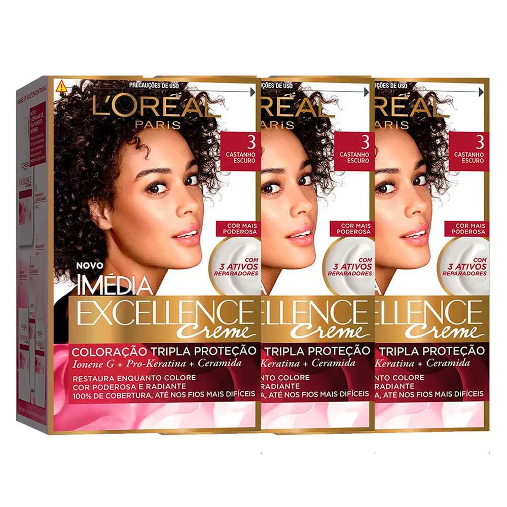 L'oréal Paris Coloração Imédia Excellence 3 Cast. Escuro Kit - 3 Unidades
