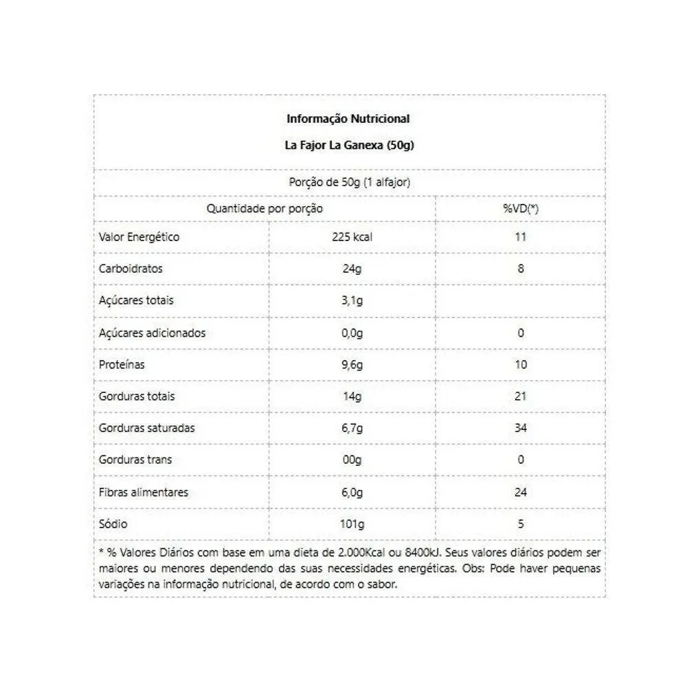 La Fajor La Ganexa O LA FAJOR é um alfajor fit que traz toda a qualidade La Ganexa que você já conhece: A La Ganexa é uma poderosa marca brasileira que teve um grande destaque no programa Shark Tank Brasil, lá eles lançaram as poderosas pastas de amendoim, com o sabor mais amado do Brasil, o leitinho. Hoje a marca é uma referência no mercado e é um grande sucesso de vendas, por isso resolveram expandir sua linha de produtos, desta forma lançaram o La fajor, o Alfajor proteico da La Ganexa. O La Fajor é um alfajor proteico muito saboroso feito com a mesma qualidade das poderosas pastas de amendoim La Ganexa, cada La Fajor conta com 9g de proteína, tem a adição de whey protein, além de zero glúten, e zero adição de açúcar. La Fajor o melhor doce fit que você já comeu!! Benefícios: - Zero adição de açúcar;- Com Whey Protein;- Zero Glúten;- Recheado com a deliciosa pasta de amendoim La Ganexa;- Cabe na bolsa.