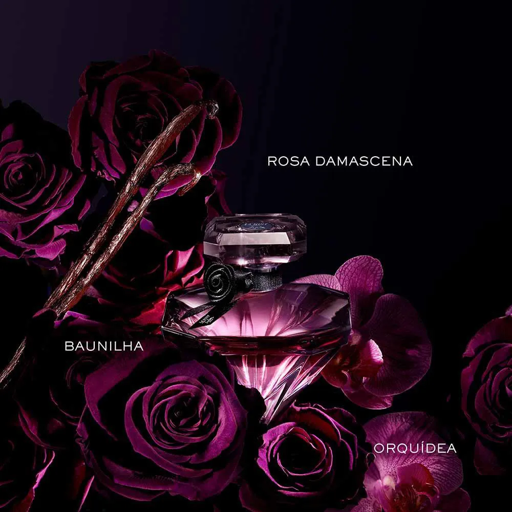 Eternamente o símbolo de Lancôme e de cada frasco de Trésor há 25 anos, esta rosa recebe um toque de preto, finamente esculpido, criando a essência da ultrafeminilidade e incorporando o amor absoluto através da graça de suas notas florais distintas e contemporâneas. A essência de Rosa de Damasco é eletrificada pela quintessência da rosa – o óxido de rosa – e seu coração pulsante oferece uma dimensão vertical vibrante, que em seguida é refrescada por um acorde de Lichia.