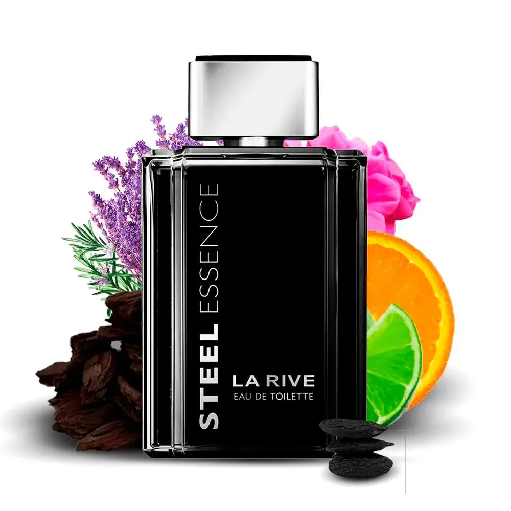 O La Rive Steel Essence Eau de Toilette 100ml é uma fragrância masculina amadeirada que busca transmitir a força e a determinação do homem moderno. Com uma pirâmide olfativa bem estruturada, combina notas frescas e especiadas com acordes amadeirados e orientais.?