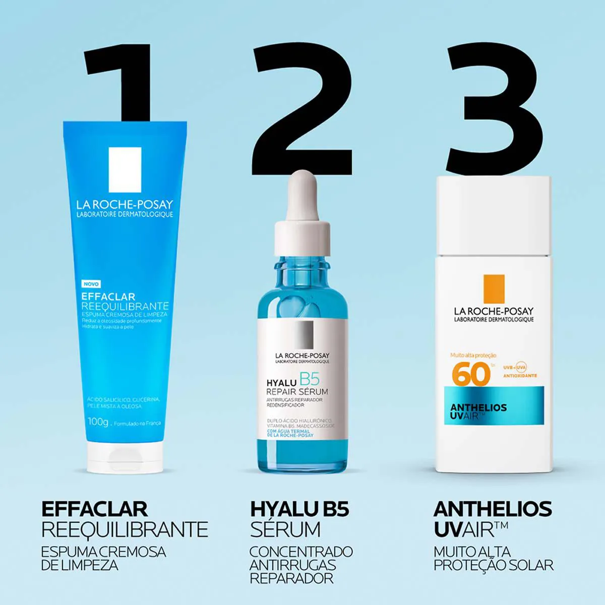 O Protetor Solar Facial Anthelios UVAir FPS 60 sem cor é uma inovação da La Roche-Posay, formulado especialmente para atender às necessidades da pele brasileira em climas quentes e úmidos. Sua textura é 10x mais leve que os protetores tradicionais, com acabamento invisível, toque seco e alta aceitação sensorial.
