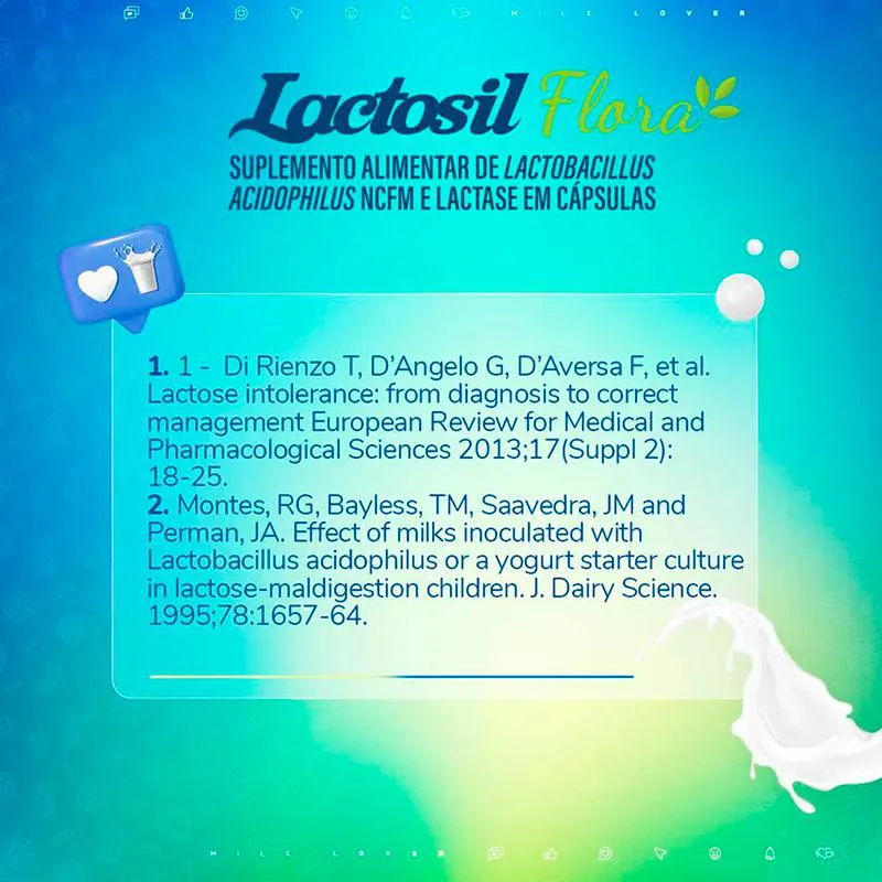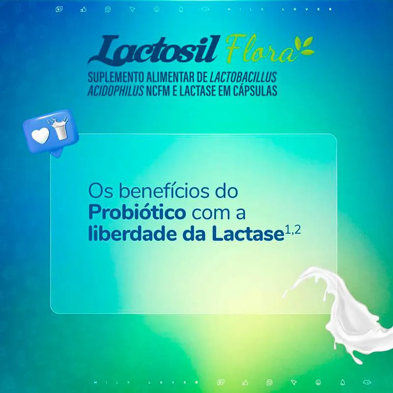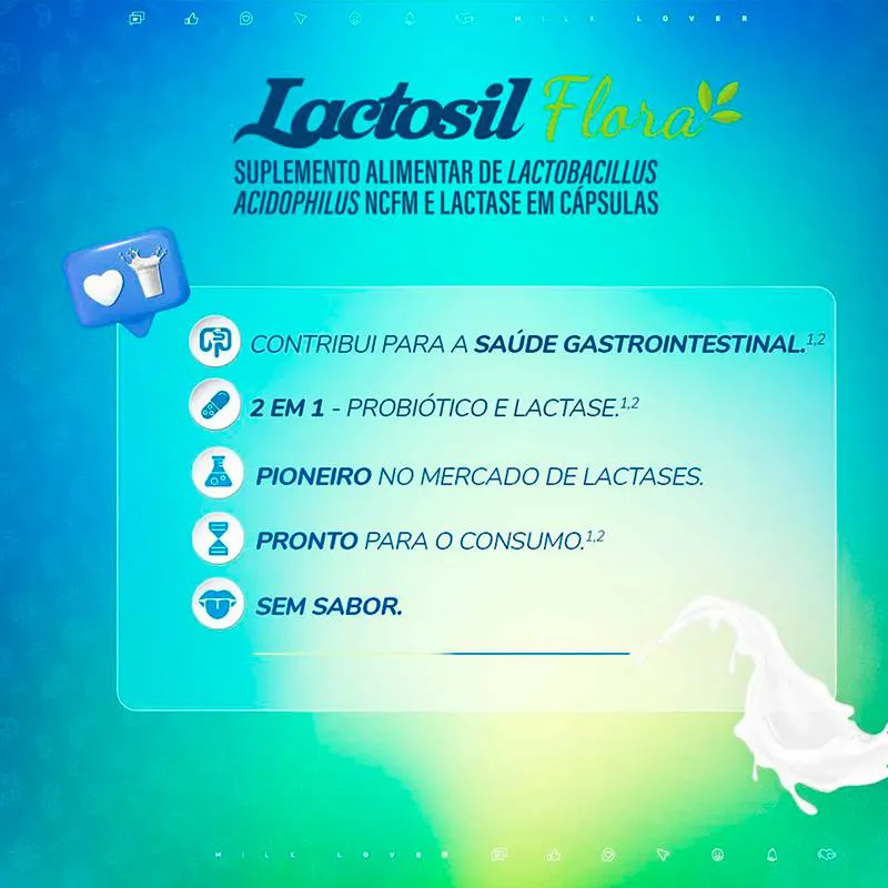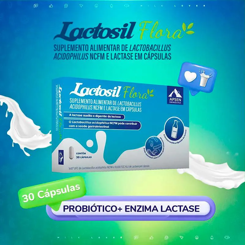 O Lactosil Flora é um suplemento alimentar desenvolvido especialmente para quem sente desconfortos ao consumir alimentos com lactose. Sua fórmula combina Lactobacillus acidophilus NCFM com lactase, enzima responsável por ajudar na quebra da lactose, auxiliando na digestão do açúcar do leite.
