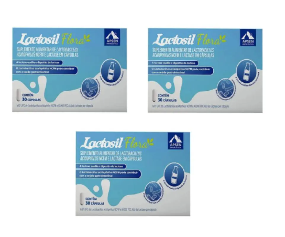 O que é e para que serve o Lactosil Flora Kit C/3 Caixas C/30 Cápsulas Cada - Probiótico + Enzima Lactase?