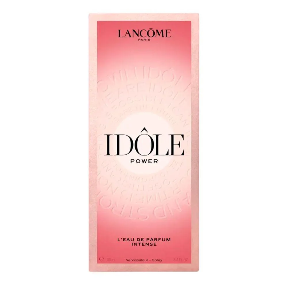 Lancôme Idôle Power Eau de Parfum Intense, lançado em dezembro de 2024, é a primeira fragrância floral amadeirada frutada da linha Idôle, projetada para mulheres que buscam expressar força, sensualidade e independência. Criada pela perfumista Daniela Andrier, a fragrância combina um acorde de pomarose (molécula frutada que remete a maçã caramelizada), rosa damascena (maio) e uma base cremosa de sândalo sustentável do oeste da Austrália, resultando em um aroma intenso, frutado e floral com um toque moderno e viciante. Inspirada pela natureza e aprimorada pela ciência, é representada pela artista Olivia Rodrigo, que personifica sua essência de autoconfiança e ousadia. Ideal para ocasiões especiais, como eventos noturnos ou encontros, e perfeita para todas as estações, especialmente outono/inverno. O frasco de 100ml, com gradiente vermelho-terracota e detalhes em rose gold, mantém o design icônico da linha Idôle, sendo fino, elegante e sustentável (embalagem FSC? MIX certificada com até 67% de resina reciclada).