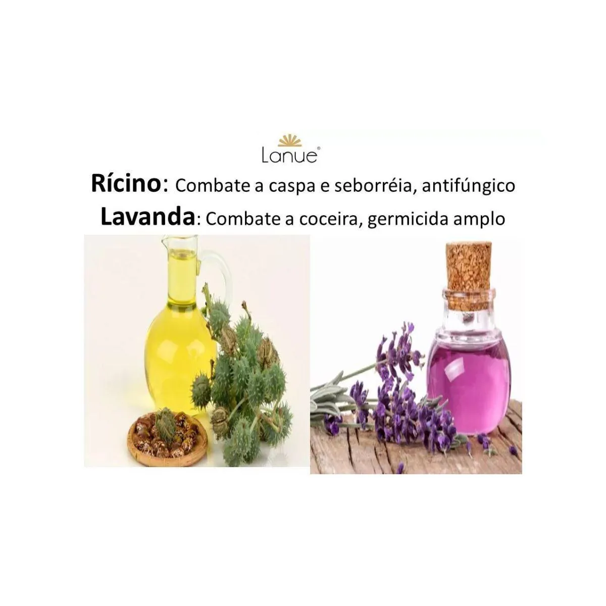 -6 óleos vegetais: Linhaça, rico em ômega 3, auxilia na regulação da secreção sebácea; Melaleuca, combate o ácaro demodex presente nas pálpebras, anti-inflamatório; Rícino, combate as paspas e seborréia; Girassol, hidratação e nutrição Camomila, efeito calmante, combate o edema; Lavanda, germicida e combate a coceira;