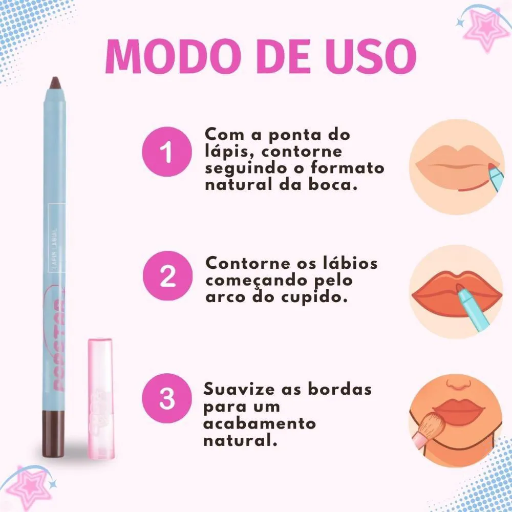 - Para o dia a dia, realçando a beleza natural com um toque de cor e definição, perfeito para um look casual e moderno. - Em eventos sociais, garantindo lábios impecáveis e um visual sofisticado, ideal para festas, jantares e ocasiões especiais. - Para criar looks personalizados, combinando com diferentes tons de batom e estilos de maquiagem, permitindo que você explore sua criatividade e individualidade. - Em fotos e vídeos, proporcionando lábios definidos e fotogênicos, garantindo que você arrase nas redes sociais e em momentos especiais. - Como presente, um item indispensável na nécessaire de qualquer amante de maquiagem, perfeito para surpreender e encantar.Modo de Uso/Aplicação