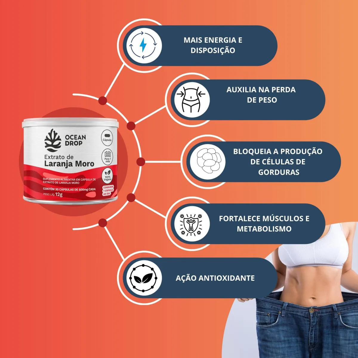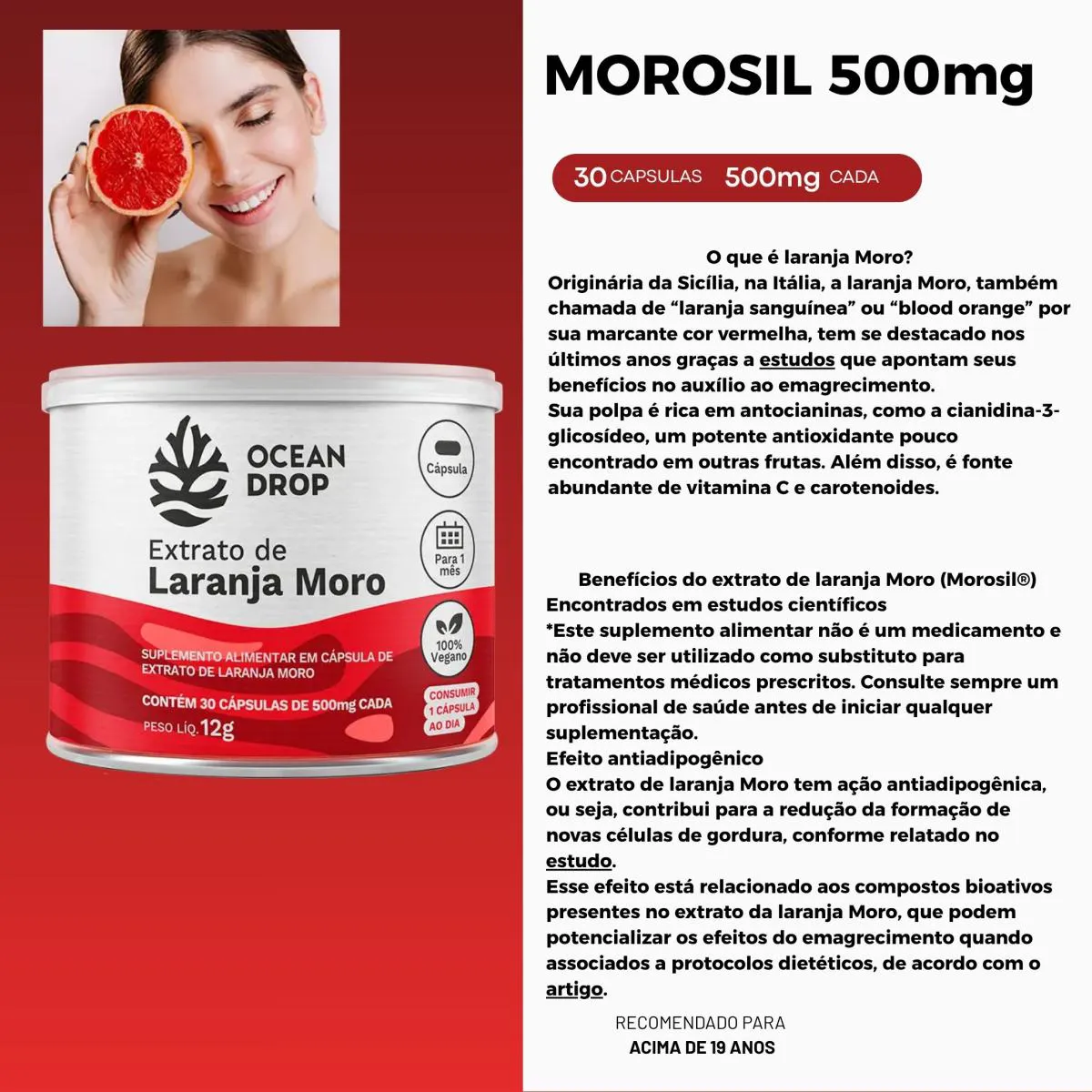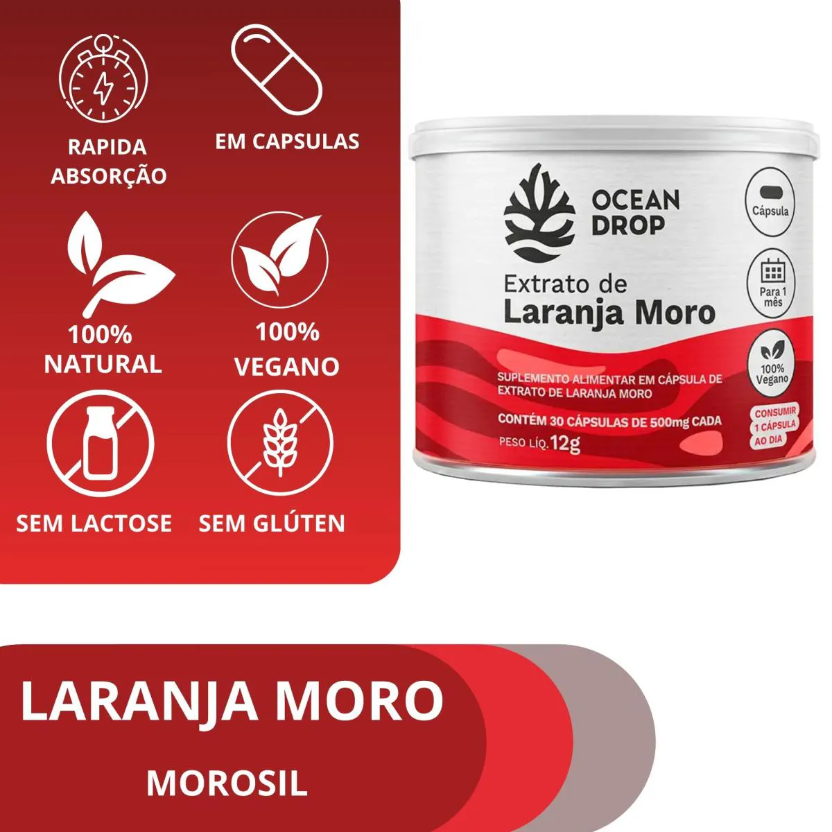Laranja Moro Extrato Morosil 500Mg Puro 30 Cápsulas Ocean Drop Original