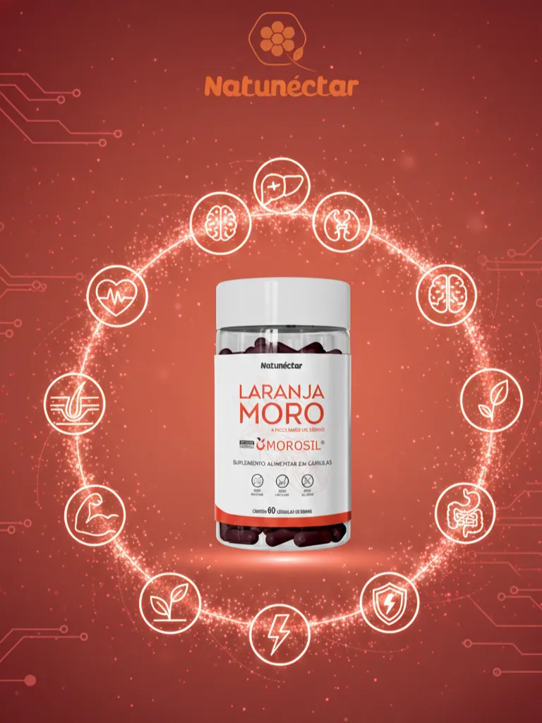 Composição: Laranja Moro (Morosil), Picolinato de Cromo; Excipientes: Estearato de Magnésio e Silicato de Magnésio; Antiumectante: Dióxido de Silício.