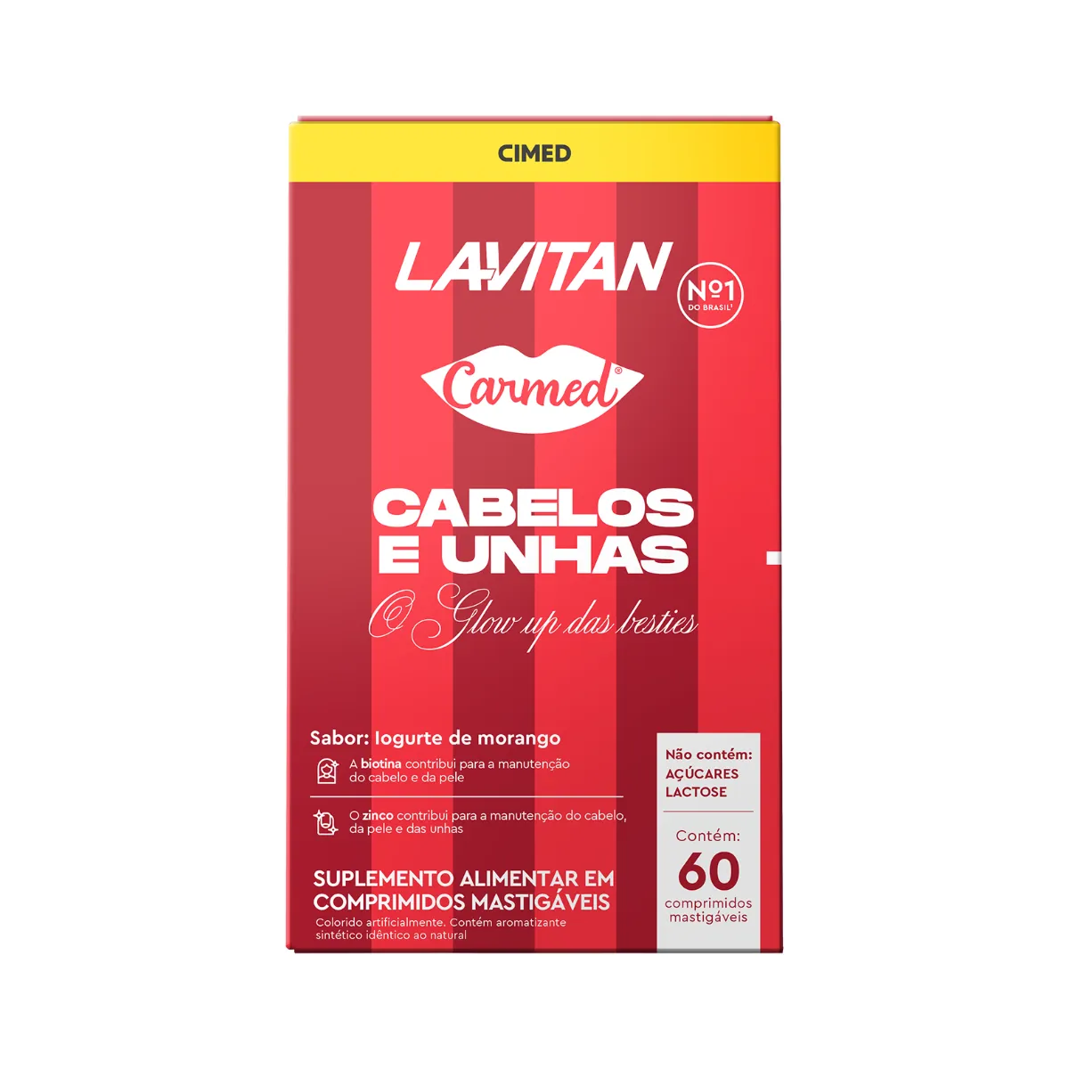 - Lavitan Carmed Cabelos e Unhas é um suplemento mastigável com vitaminas essenciais para fortalecimento dos fios e unhas.