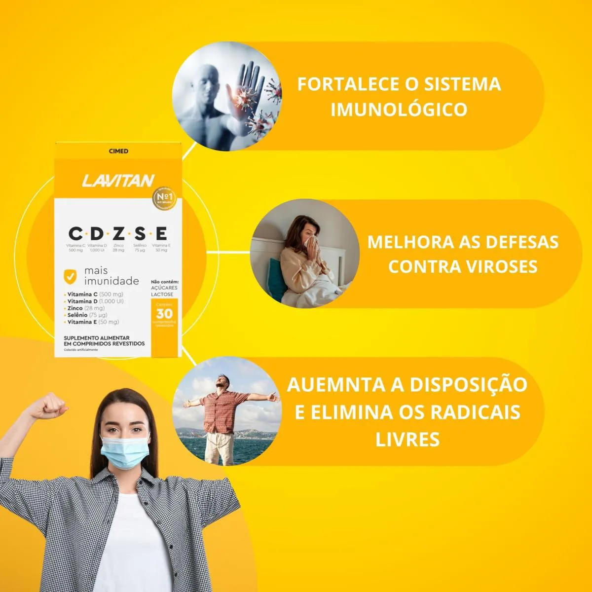 Lavitan Imunidade Cdzse 30 Cp Vitaminas C D e Zinco Selenio