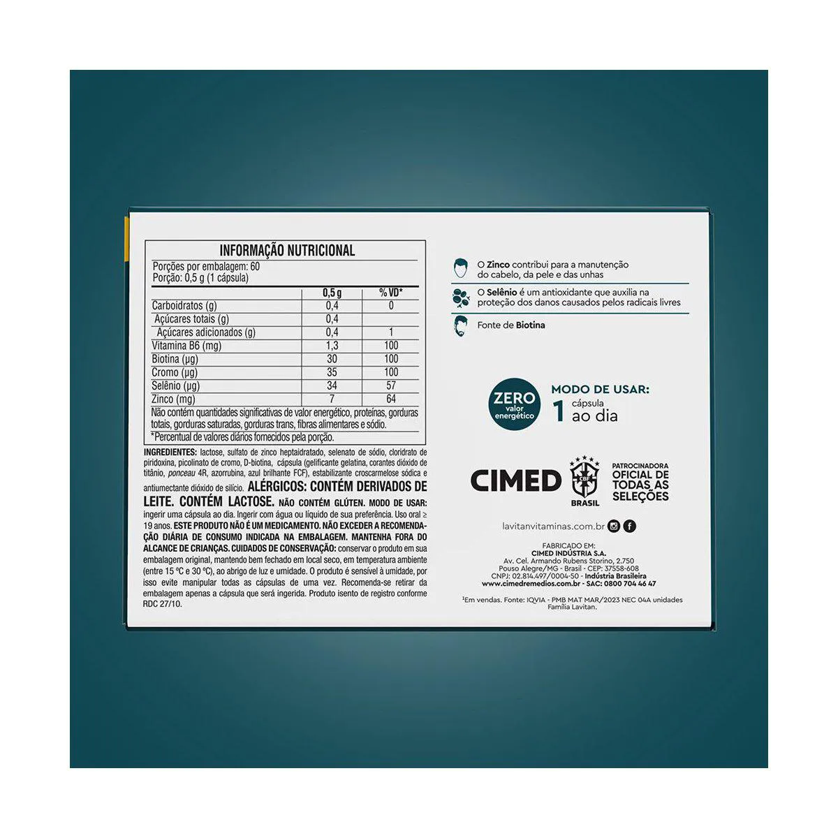 - Exclusiva fórmula que combina Zinco, Selênio, Vitamina B6, Cromo e Biotina (vitamina B7).