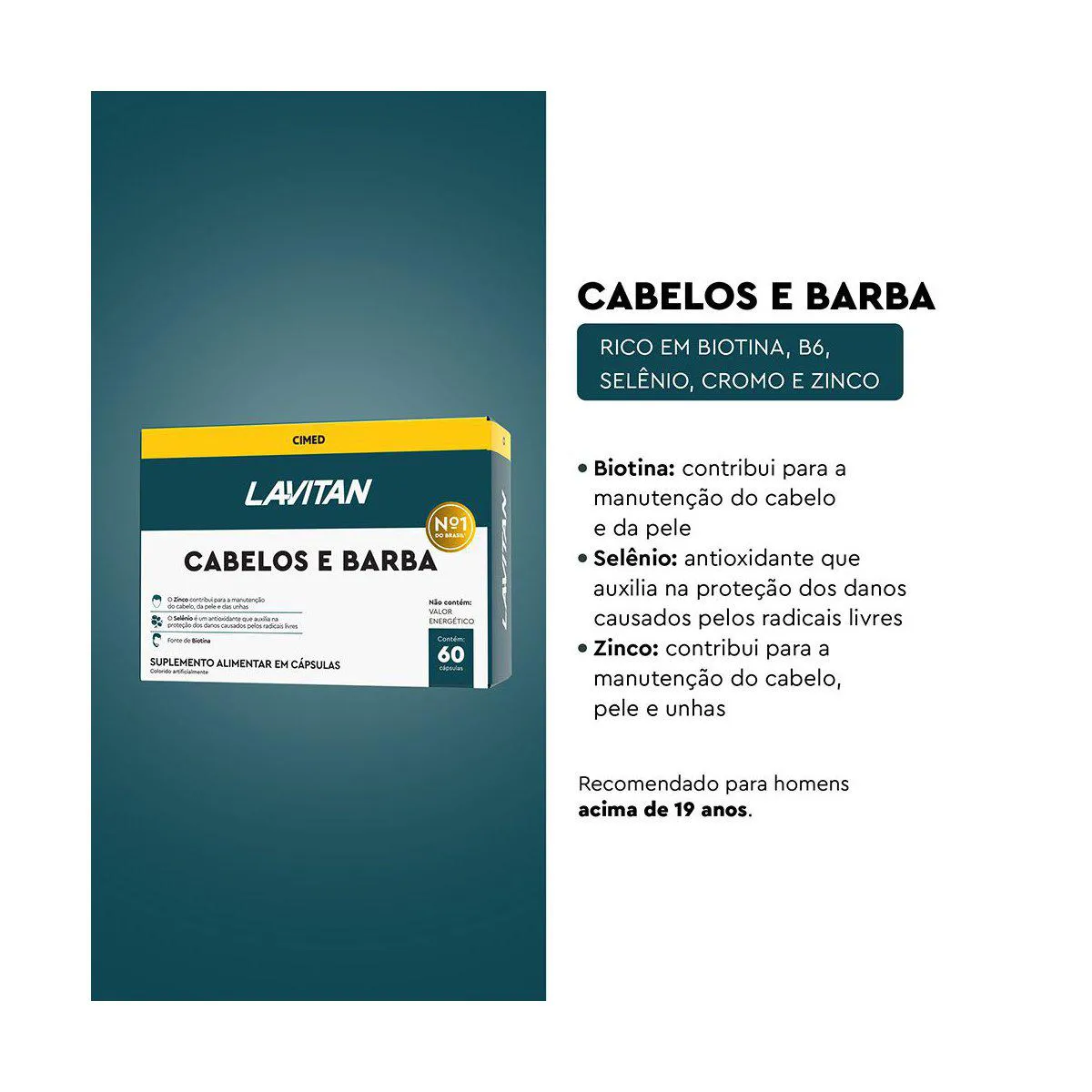 Lavitan Cabelos e Barba é um suplemento vitamínico mineral que auxilia no rejuvenescimento capilar, trabalhando diretamente no fortalecimento e crescimento saudável dos cabelos e fios de barba.