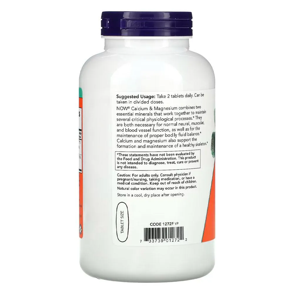 Cálcio e Magnésio 500/250mg Now Foods 250 Tabs Importado 1. Principal suporte: Este suplemento de cálcio e magnésio oferece suporte essencial para a saúde óssea e muscular, ajudando a manter a integridade estrutural e funcional do corpo. 2. Vantagem da apresentação em tabs: Com sua forma conveniente em tabs, este produto torna mais fácil incorporar os benefícios do cálcio e do magnésio à sua rotina diária de suplementação. 3. Importado e pronto para envio: Importado para garantir a qualidade e a procedência dos ingredientes, este suplemento está disponível para entrega imediata, proporcionando conveniência e confiabilidade. 4. Facilidade de incorporação à rotina: Adicione este suplemento à sua rotina diária sem complicações. Basta integrá-lo aos seus hábitos diários para obter os benefícios do cálcio e do magnésio. 5. Composição: Cada tab contém uma potente combinação de 500mg de cálcio e 250mg de magnésio, essenciais para o suporte ósseo, muscular e geral do corpo. Validade longa