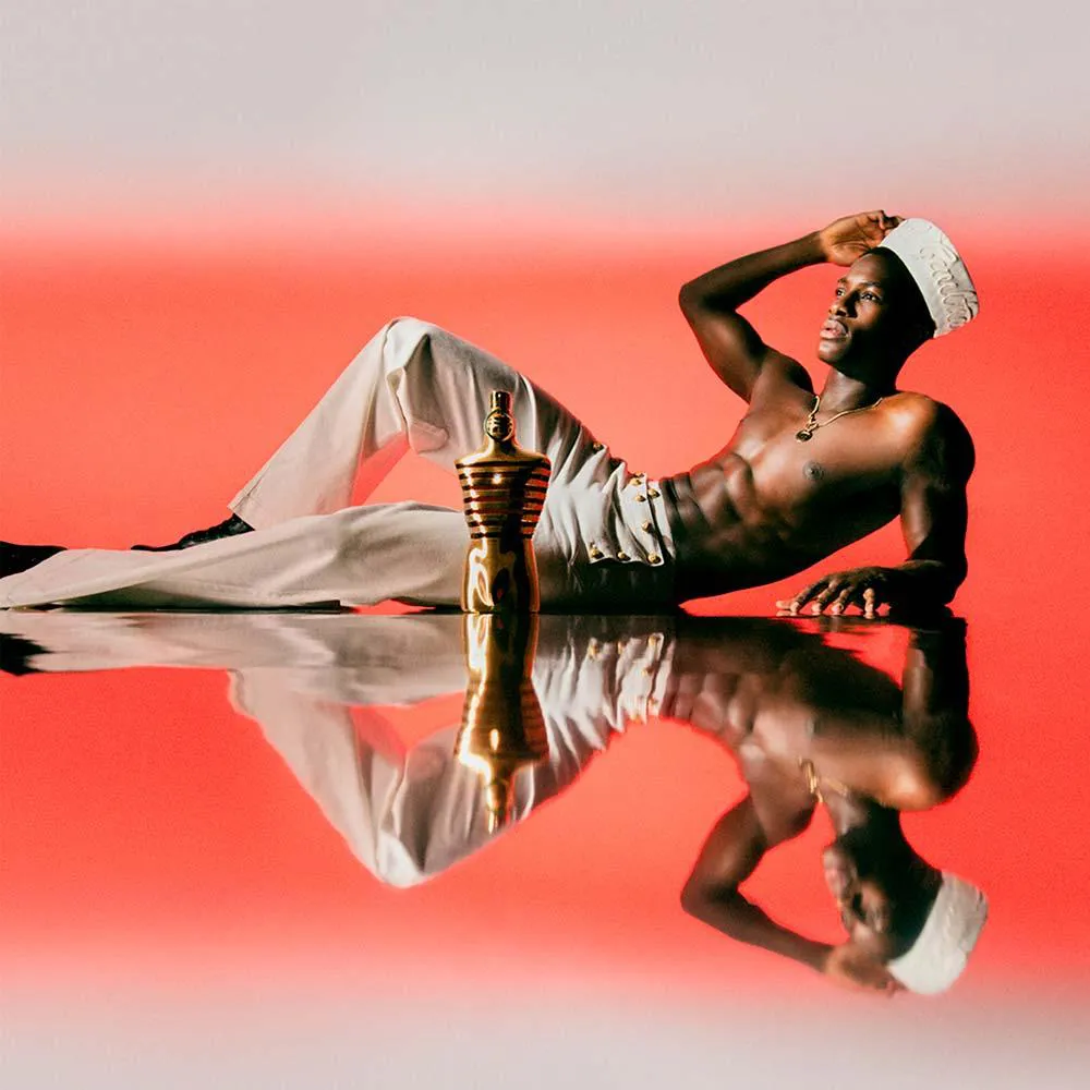 Que calor sufocante com a chegada do novo marinheiro Le Male Elixir! A bordo, seu perfume Gaultier é tão intenso que o ouro se derrete em listras brilhantes no torso tórrido e na caixa de metal.