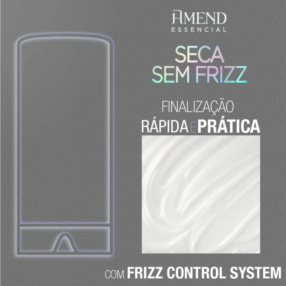 Perfeito para fazer uma pausa no uso do secador, chapinha ou difusor, o Amend Essencial Seca Sem Frizz deixa as cutículas mais alinhadas e minimiza o frizz, sem a necessidade do uso de fontes de calor. A exclusiva fórmula Frizz Control System* restaura e retém a umidade dos fios e os protege do ressecamento, enquanto fortalece e repara cutículas danificadas sem deixar um filme pesado sobre os cabelos. Após secarem naturalmente, os cabelos ficam alinhados, brilhantes e hidratados. Caso deseje uma finalização com o uso de fontes de calor, este produto também garante proteção térmica. Dermatologicamente testado
