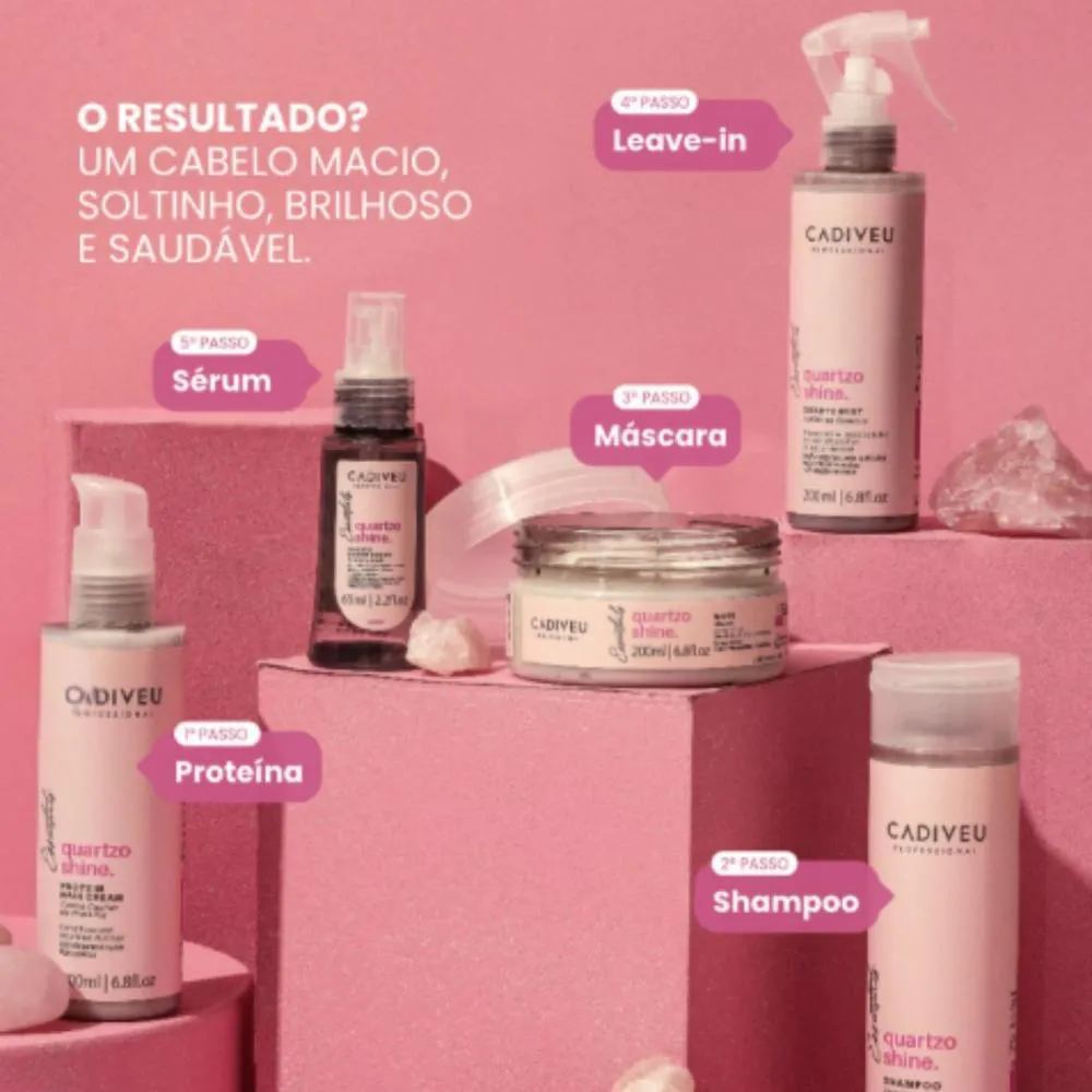 O leave-in fluido de Quartzo Condicionante foi criado para dar brilho intenso, disciplina e leveza aos fios, com uma fórmula ultraleve que não pesa e oferece proteção térmica eficiente.Seus principais ativos são quartzo rosa, proteína vegetal e extrato de aveia, que, juntos, iluminam a fibra, fortalecem as áreas fragilizadas e selam a cutícula para reduzir o frizz e alinhar os fios.Esse fluido condicionante desliza facilmente pelo cabelo úmido ou seco, facilitando o desembaraço e preparando os fios para escova ou prancha. Promove um acabamento sedoso, toque aveludado e realça o brilho natural, além de proteger contra o calor e manter a maciez ao longo do dia.Cabelos alinhados, com brilho tridimensional, frizz controlado, toque sedoso e aparência saudável com proteção térmica.