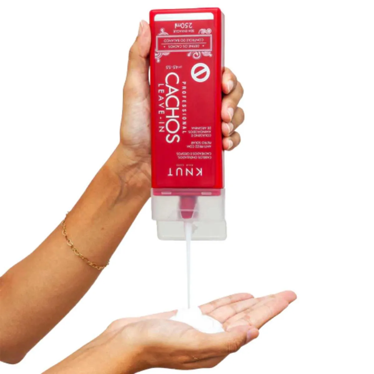 O leave-in Knut Cachos, foi desenvolvida para cabelos ondulados e cacheados naturais ou com química, com a mais alta tecnologia cosmética. Contém colágeno pró V, uma proteína essencial para manter os cachos controlados, reduzindo o frizz e o volume, e aminoácidos de arginina deixando os cabelos cacheados ainda mais hidratados, macios, maleáveis e com um balanço incrível. Indicado por profissionais. Especificações Modo de usar: Aplicar sobre os fios no comprimento e nas pontas massageando homogeneamente. Penteie. Sem enxague.=========================================================================================