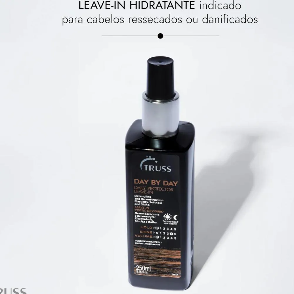 O Leave-In Truss Day By Day 250 ml é o aliado perfeito para quem busca desembaraço imediato, proteção e um toque hidratado no dia a dia.