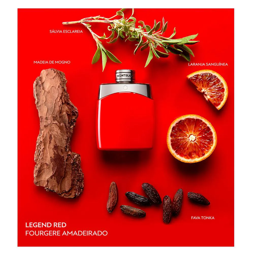 O vermelho simboliza diferentes emoções e traços. É essa ambiguidade que torna a cor tão fascinante, e a inspiração para a fragrância elaborada pelos perfumistas Anne Flipo e Nicolas Beaulieu, que capta toda complexidade e intensidade masculina. A sensação vermelha começa com a frescura suculenta da Laranja Sanguínea e da Toranja misturada com um contraste picante de Cardamômo. O encontro entre a Sálvia, Cedro e Zimbro vestem a frescura cítrica com facetas aromáticas, enquanto a combinação magnética de Mogno, Cedro e um toque da Fava de Tonka acrescentam uma sensualidade aveludada ao Legend Red. Uma fragrância amadeirada carismática, fresca, intensa, ousada, porém, sensível.
