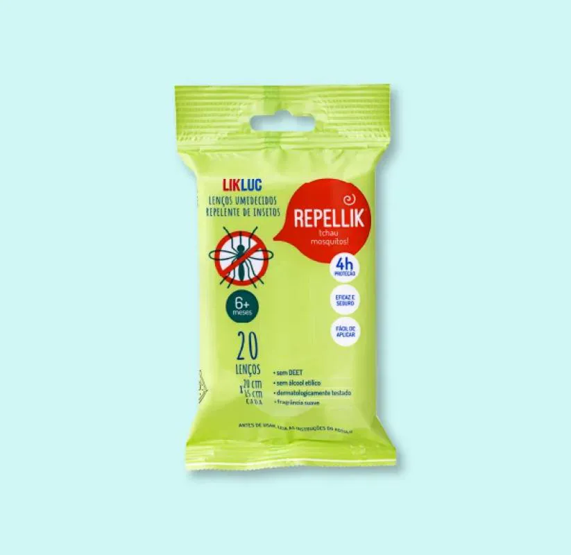 Nada é mais importante do que proteger quem amamos, e os lenços umedecidos repelentes Repellik® foram desenvolvidos pensando no cuidado que seu bebê merece. Com uma fórmula segura e dermatologicamente testada, assim como a compressa Xô Febre, eles garantem proteção eficaz contra insetos sem agredir a pele delicada dos pequenos. Leves, práticos e sem ingredientes agressivos, os lenços repelentes são a escolha ideal para manter seu bebê seguro e confortável em qualquer situação. Além disso, oferecem proteção comprovada contra mosquitos transmissores de doenças como zika, dengue e chikungunya. Para uma proteção ainda mais completa, você pode usar as pulseiras e adesivos de citronela, disponíveis na mesma linha.