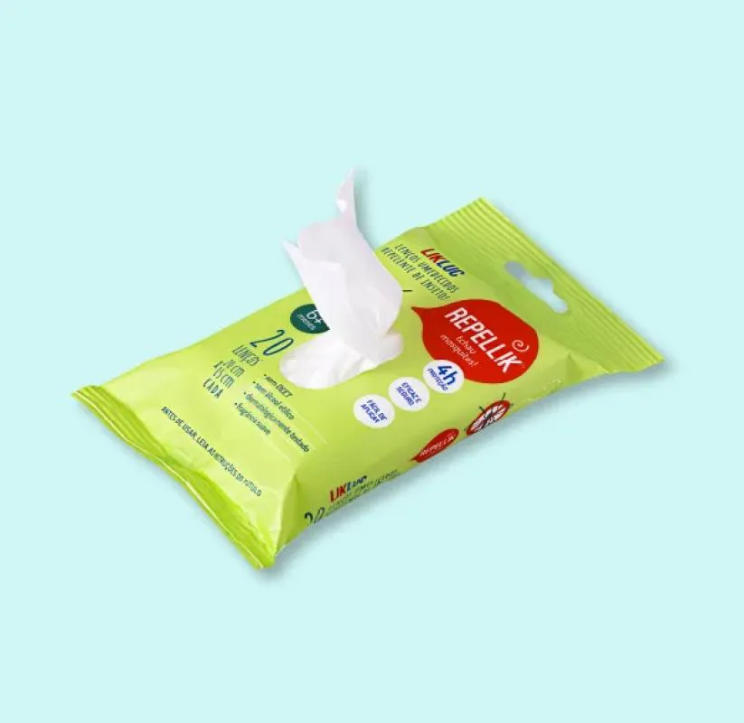 Lenços umedecidos repelentes sem álcool para uma proteção segura
