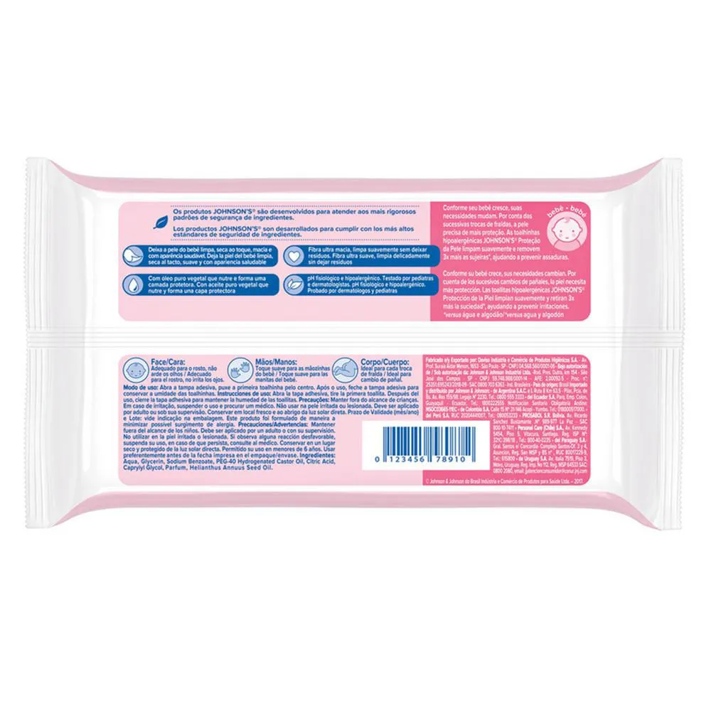 As Toalhas Umedecidas Johnson’s Baby Extra Cuidado, da Johnson & Johnson foram desenvolvidas pensando no cuidado da pele do seu bebê. Sua fórmula é enriquecida com loção hidratante, que ajuda a prevenir irritações desde o primeiro uso, hidratando e preservando as barreiras naturais da pele do bebê.