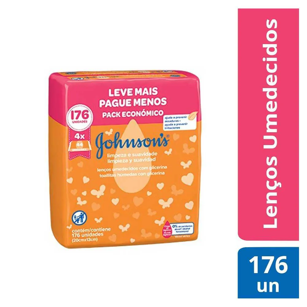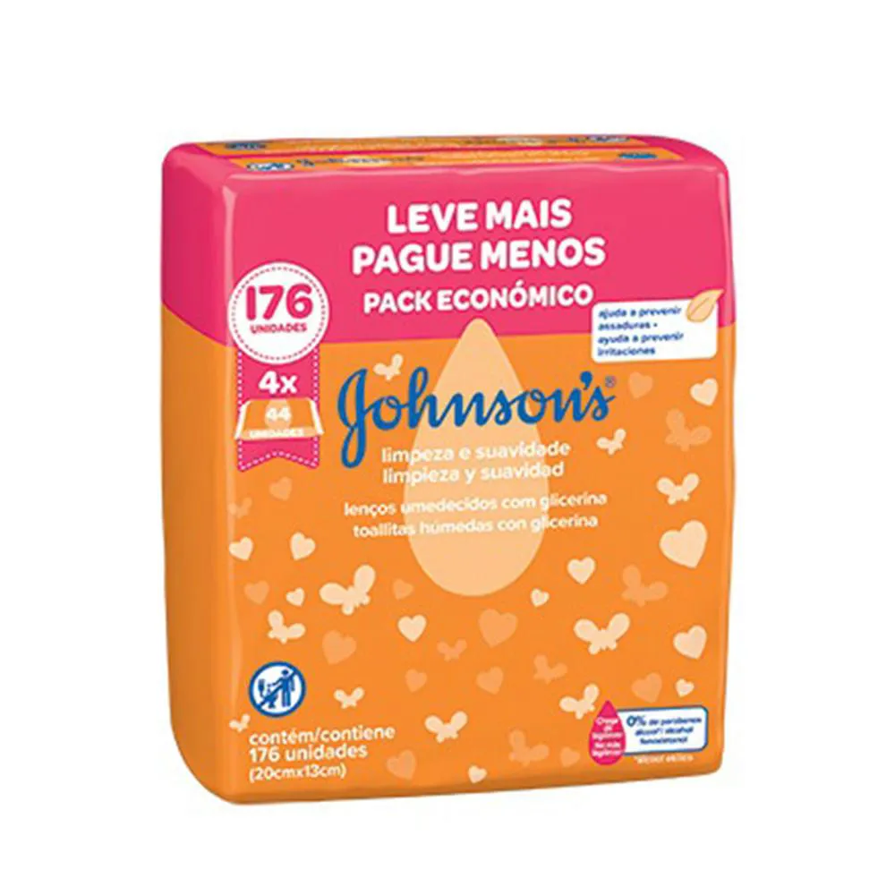 Lenços Umedecidos Limpeza e Suavidade Johnson's Baby 176 UN