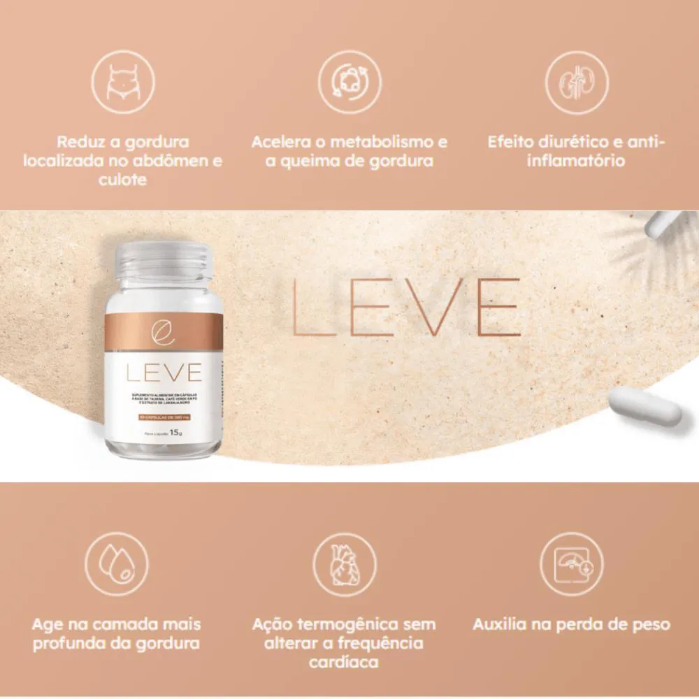 O LEVE é ideal para quem busca lapidar sua silhueta de forma totalmente natural, segura e o melhor, sem precisar passar anos se privando das coisas boas da vida.