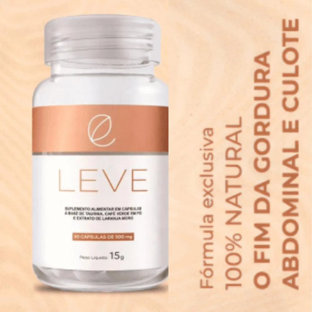 O LEVE é muito mais do que um termogênico de ação direta na gordura teimosa ou uma cápsula que firma e melhora a beleza da sua Informação NutricionalPorção de 500mg (1 cápsula)Quantidade por porção%VD (*)Taurina200 mg-Ácido Clorogênico75 mg-Antocianinas5 mg-Não contém quantidades significativas de valor energético, carboidratos, açúcares totais, açúcares adicionados, proteínas, gorduras totais, gorduras saturadas, gorduras trans, fibras alimentares e sódio.Ingredientes: Taurina, Café Verde em pó, Extrato de Laranja Moro.Antiumectantes: estearato de magnésio e dióxido de silício.Composição da cápsula: hipromelose.NÃO CONTÉM GLÚTEN. NÃO CONTÉM LACTOSE.Este produto não deve ser consumido por gestantes, lactantes e crianças* Percentual de valores diários fornecidos pela porção. Como usufruir de todos estes benefícios?Incorpore mais cuidado na sua rotinaO LEVE é um alimento de uso diário. Ou seja, é necessário ingerir 1 cápsula ao dia.Seu consumo também deve ser acompanhado pela ingestão de líquidos no horário do dia que mais se adaptar a sua rotina. Evite tomar em jejum.Contém em cada frasco 30 cápsulas de 500mg. Recomendado a ingestão de 1 cápsula ao dia.PRINCÍPIOS ATIVOS DA FÓRMULA:- Taurina