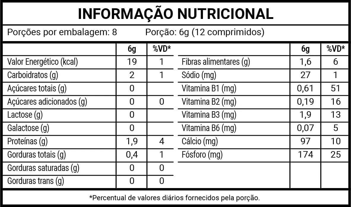 Levedura de cerveja em pó; Antiumectante: fosfato tricálcio; Espessante: carboximetilcelulose sódica