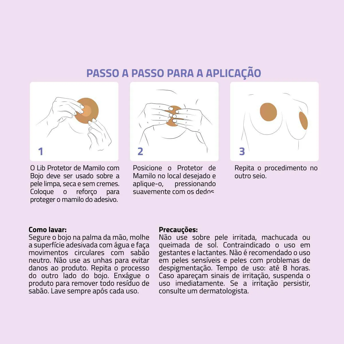 - O Lib Protetor d Mamilos deve ser usado sobre a pele limpa, seca e sem cremes. Cloque o reforço para proteger o mamilo do adesivo, centralizando-o um de cada vez.