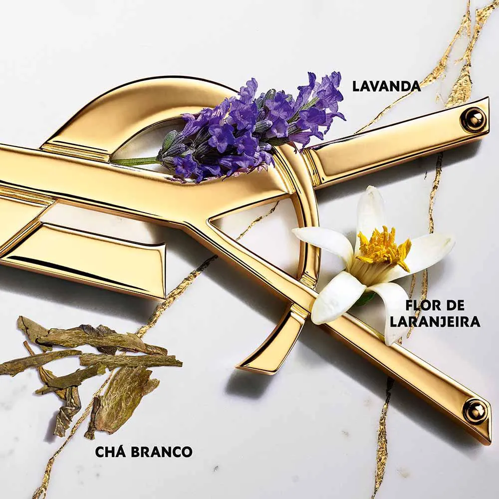 A tensão entre o frescor da lavanda francesa e a sensualidade ardente da flor de laranjeira marroquina ganha uma nova dimensão com o acorde neutro de chá branco.