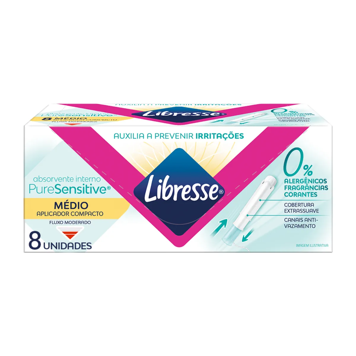 Absorvente Interno Libresse Pure Sensitive Médio Com Aplicador Compacto 8 Unidades