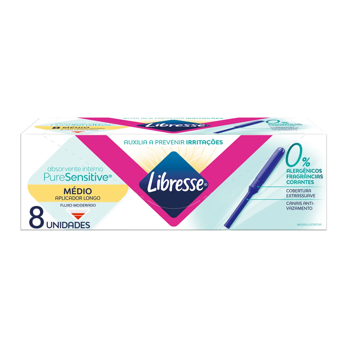 Absorvente Interno Libresse Pure Sensitive Médio Com Aplicador Longo 8 Unidades