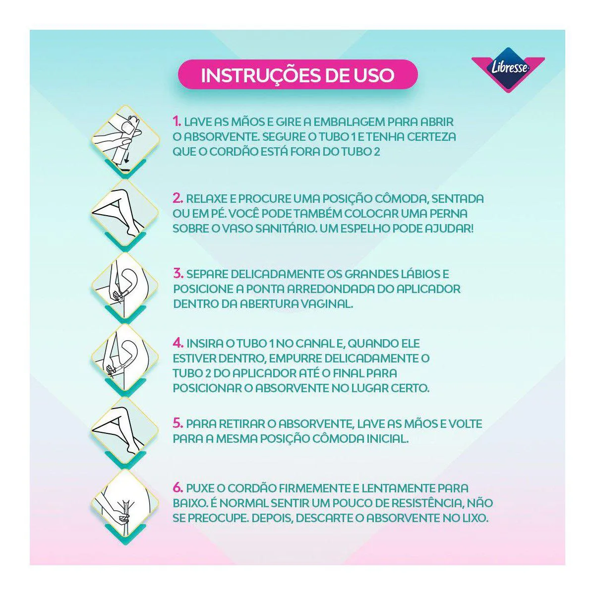 Como usar o Absorvente Libresse Interno Médio Com Aplicador Longo?