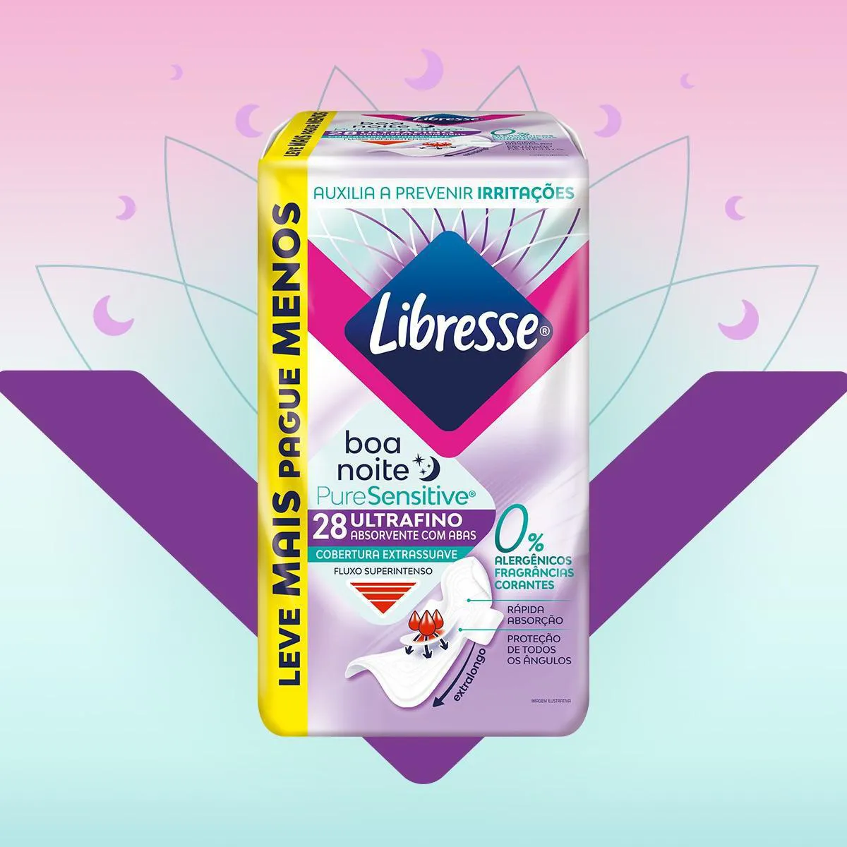 Absorvente Noturno Libresse Pure Sensitive Ultrafino Com Abas 28 Unidades