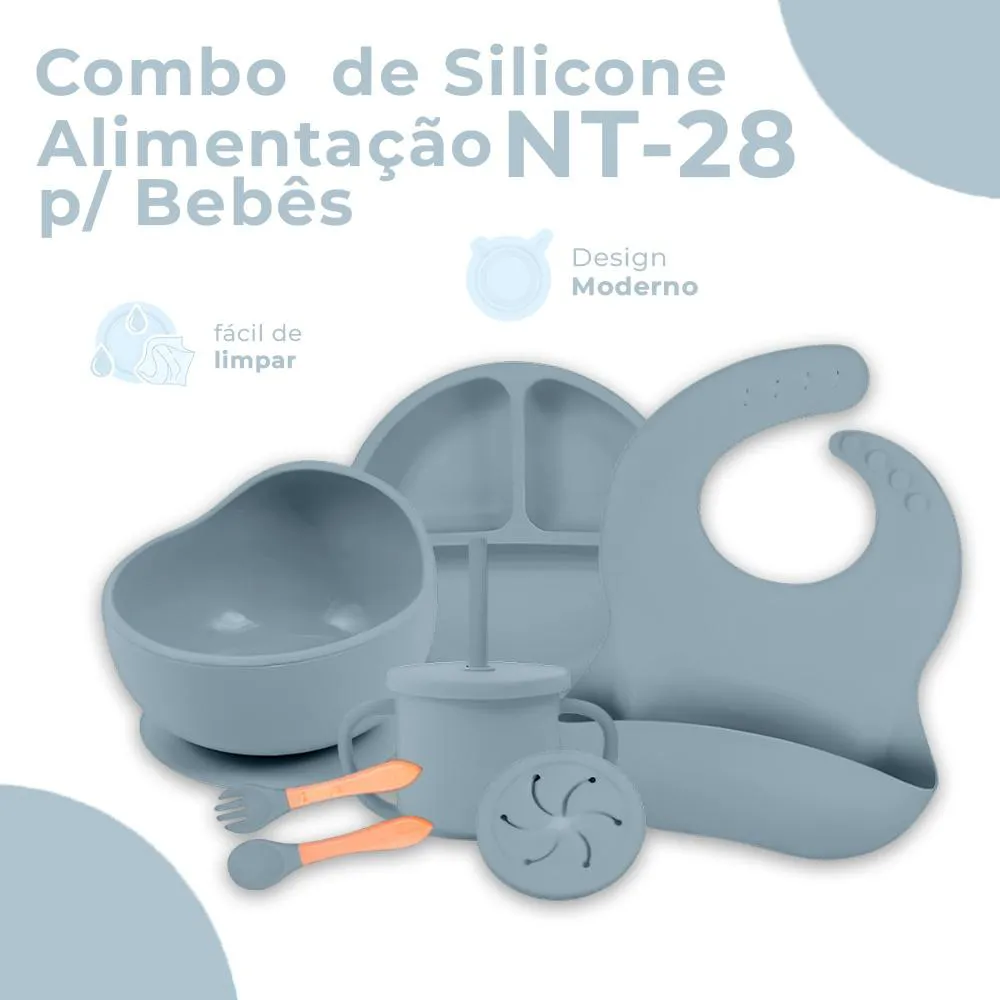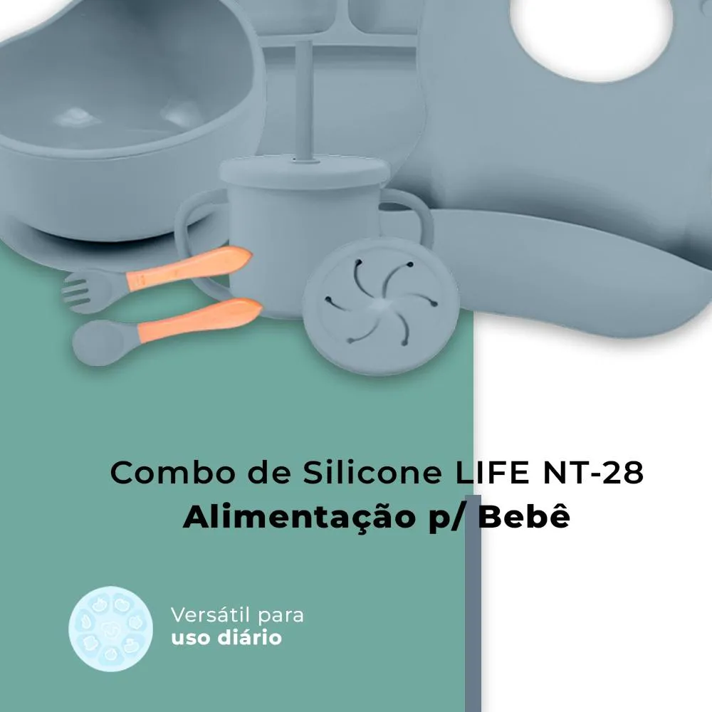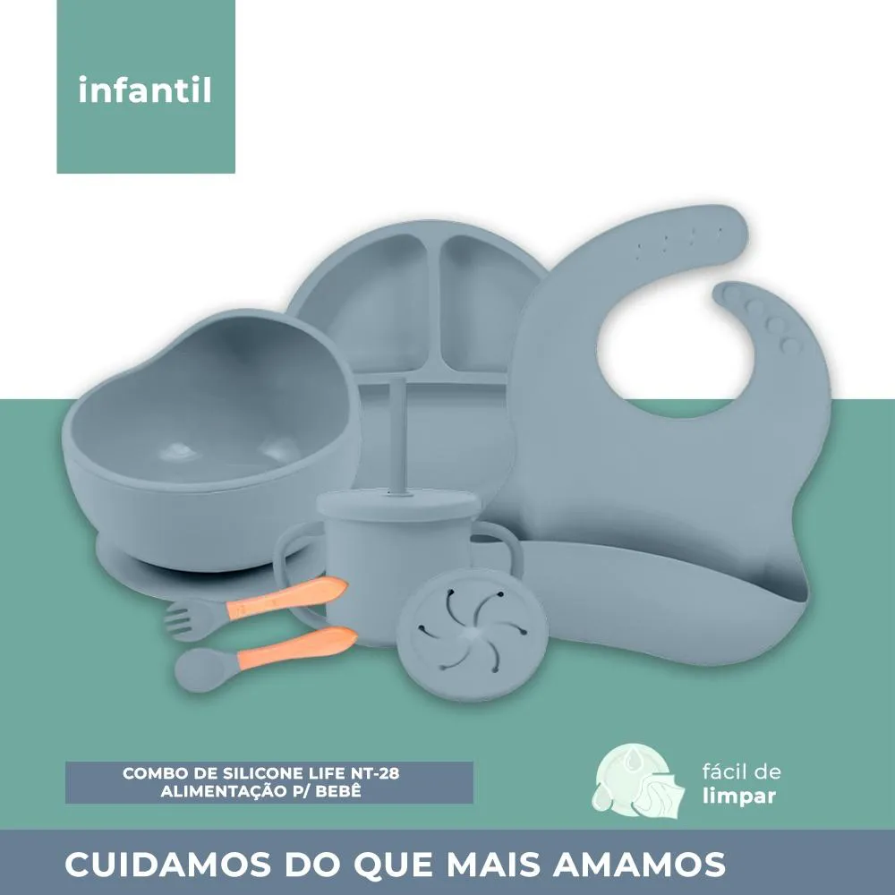 Combo de Silicone Life NT-28 alimentação infantil Azul, Conjunto Completo para Refeição, Introdução Alimentar