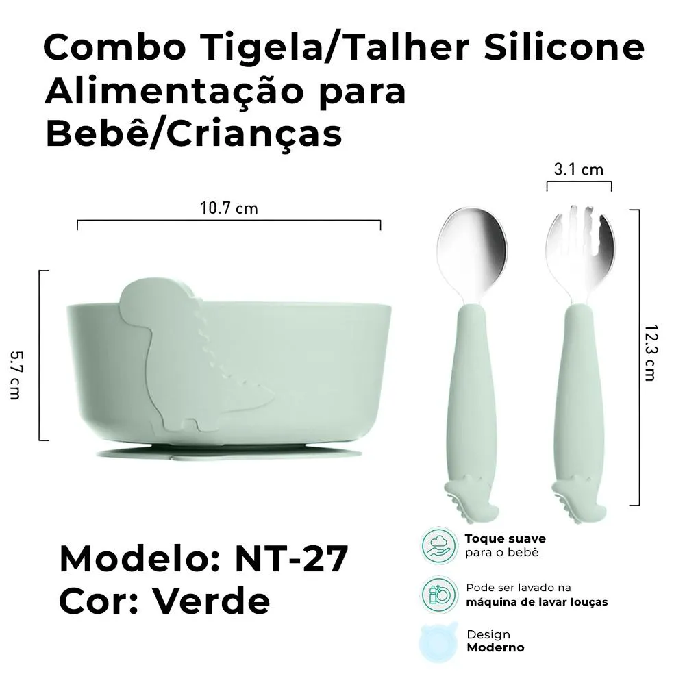 Combo Tigela e Talher Silicone Life NT-27 para Alimentação Bebê/Crianças Verde, Conjunto Completo, Livre de BPA, PVC e Látex 1. Conjunto Completo para Alimentação do Bebê: O Combo Silicone Life NT-27 inclui uma tigela e talher desenvolvidos especialmente para a alimentação de bebês. Ideal para tornar as refeições mais práticas e seguras, proporcionando conforto e qualidade nas refeições diárias. 2. Silicone de Grau Alimentício e Seguro: Fabricados com silicone de grau alimentício, tanto a tigela quanto o talher são completamente livres de BPA, PVC e látex, garantindo que não haja substâncias tóxicas, oferecendo segurança total durante o uso. 3. Ideal para Bebês e Crianças Pequenas: O conjunto foi projetado para atender as necessidades alimentares de bebês e crianças pequenas, com o tamanho adequado para as porções ideais, além de ser fácil de segurar e manusear, estimulando a autonomia do bebê. 4. Fácil de Limpar e Durável: O silicone de alta qualidade permite que tanto a tigela quanto os talheres sejam facilmente limpos, podendo ser lavados à mão com facilidade. Eles também são altamente resistentes, garantindo durabilidade e fácil manutenção. 5. Conforto e Praticidade no Dia a Dia: O Combo Life NT-27 é perfeito para o uso diário, seja em casa ou durante passeios. Seu design funcional e os materiais seguros garantem que o bebê tenha uma alimentação prática, confortável e sem riscos. Garantia 90 dias