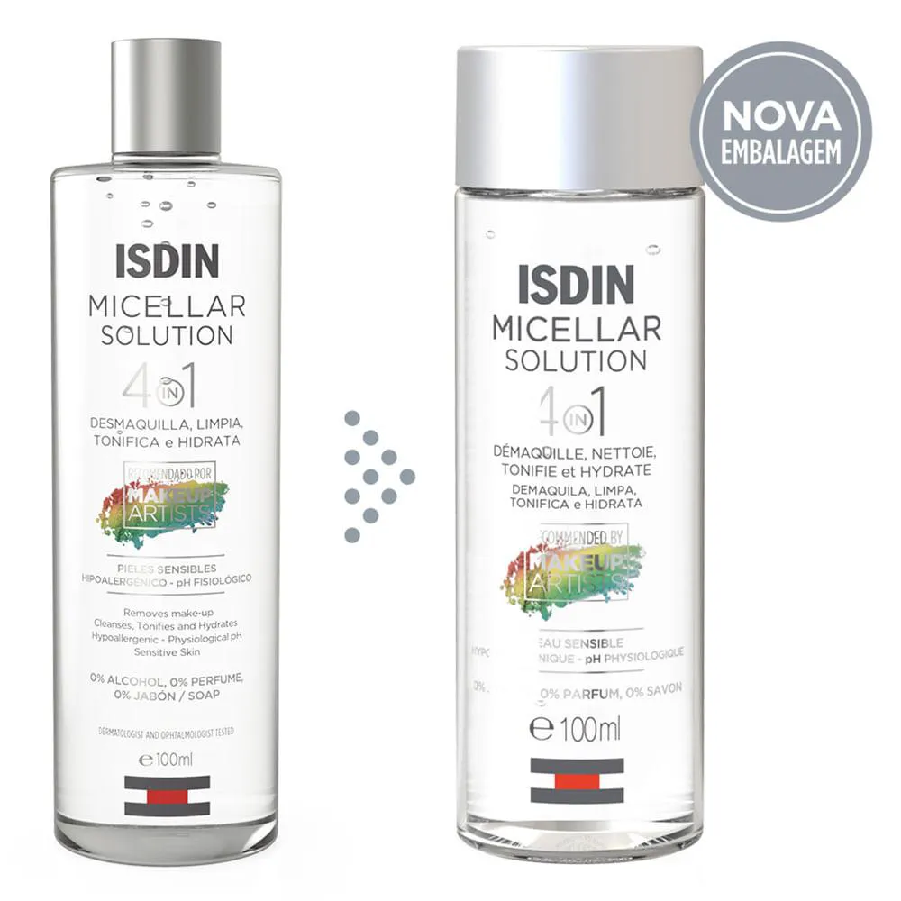 ISDIN apresenta a nova Micellar Solution 4 em 1, recomendada por maquiadores profissionais. A solução micellar que limpa, demaquila, tonifica e hidrata.