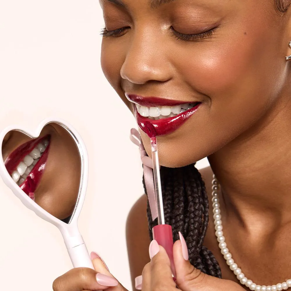 Vegano, cruelty-free e com cheirinho de morango, ele vem com aplicador de precisão que permite criar desde o efeito degradê coreano até um visual mais intenso, construindo camadas de brilho e cor sem perder o conforto e o efeito glass lips.