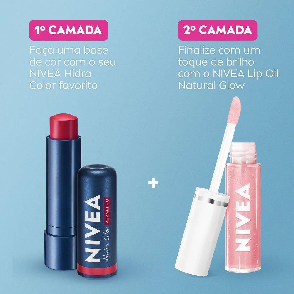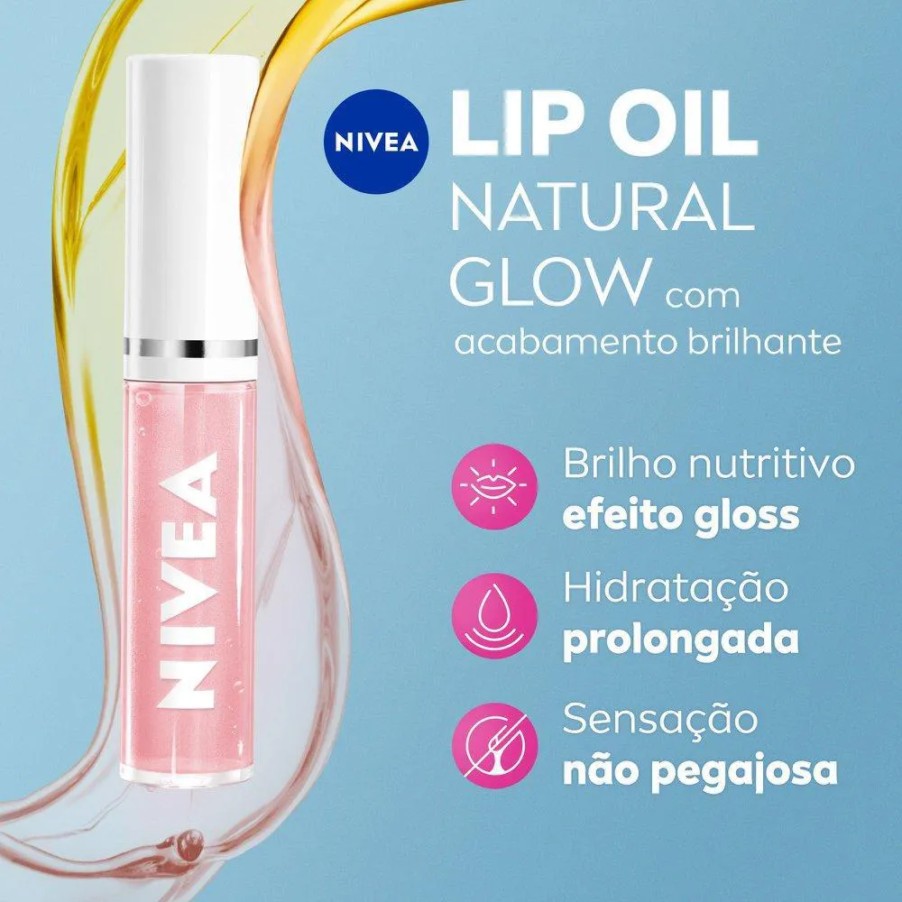 O Lip Oil Nivea é um óleo labial que proporciona hidratação prolongada para os lábios, com um acabamento brilhoso e textura não oleosa. Seu objetivo é nutrir, hidratar e dar volume aos lábios, oferecendo um brilho natural e suave.