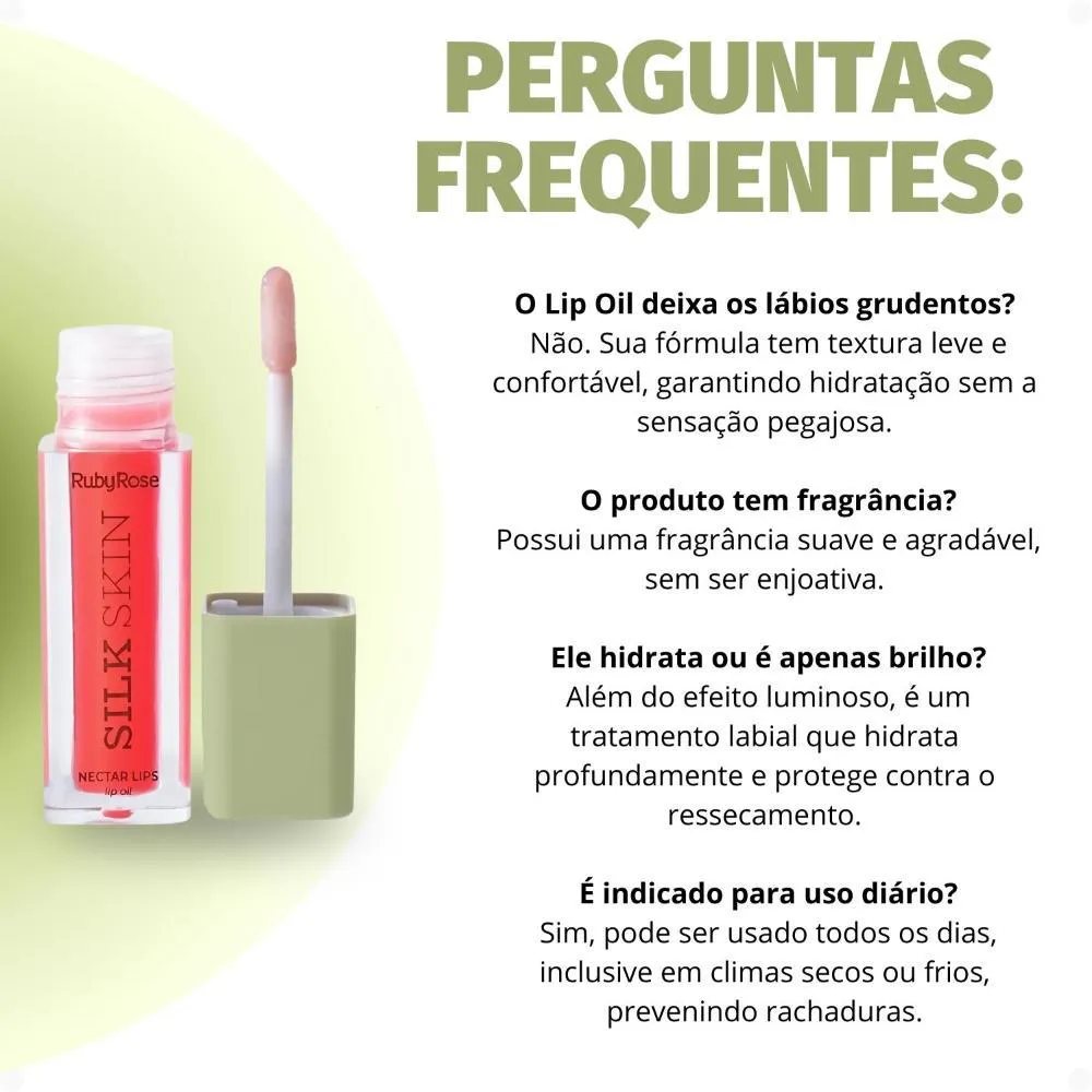 Descubra o Lip Oil Ruby Rose Silk Skin Nectar Lips Shine Rouge Hb-l6504-1, um tratamento labial essencial que une hidratação profunda a um brilho sutil e elegante. Formulado pela renomada RUBY ROSE, este Lip Oil na cor Shine Rouge é a solução ideal para quem busca lábios nutridos, macios e com um toque de cor vibrante. Sua fórmula exclusiva proporciona uma experiência de cuidado labial superior, perfeita para o uso diário, garantindo lábios irresistíveis.Com uma textura leve e não pegajosa, o Lip Oil Nectar Lips Silk Skin é rapidamente absorvido, oferecendo conforto imediato e duradouro. Ele atende ao desejo de lábios bem cuidados e realçados, tornando-se um item indispensável em sua rotina de beleza. Ideal para quem busca praticidade e beleza em um só produto, este lip oil oferece uma solução completa para lábios deslumbrantes.Benefícios Principais