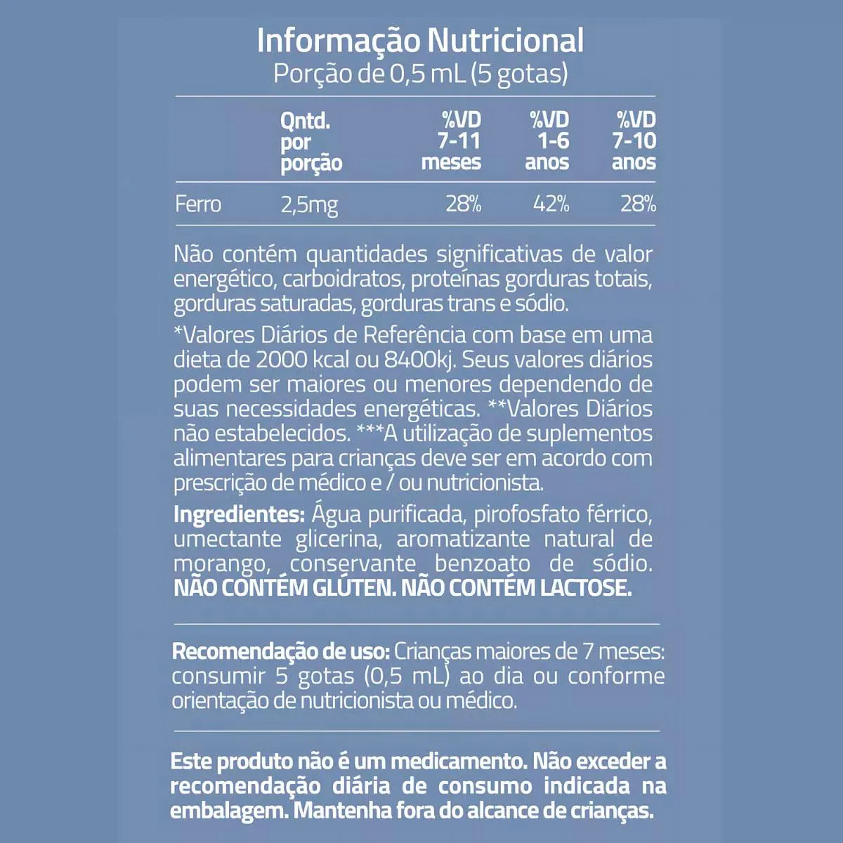 - Suplemento de ferro em gotas para crianças.