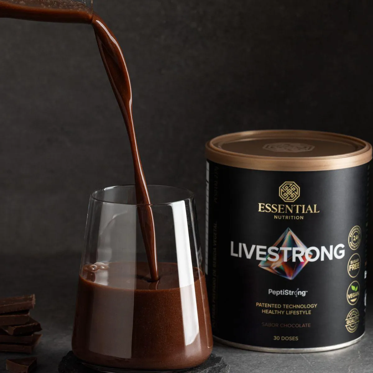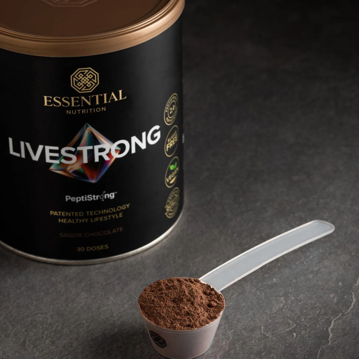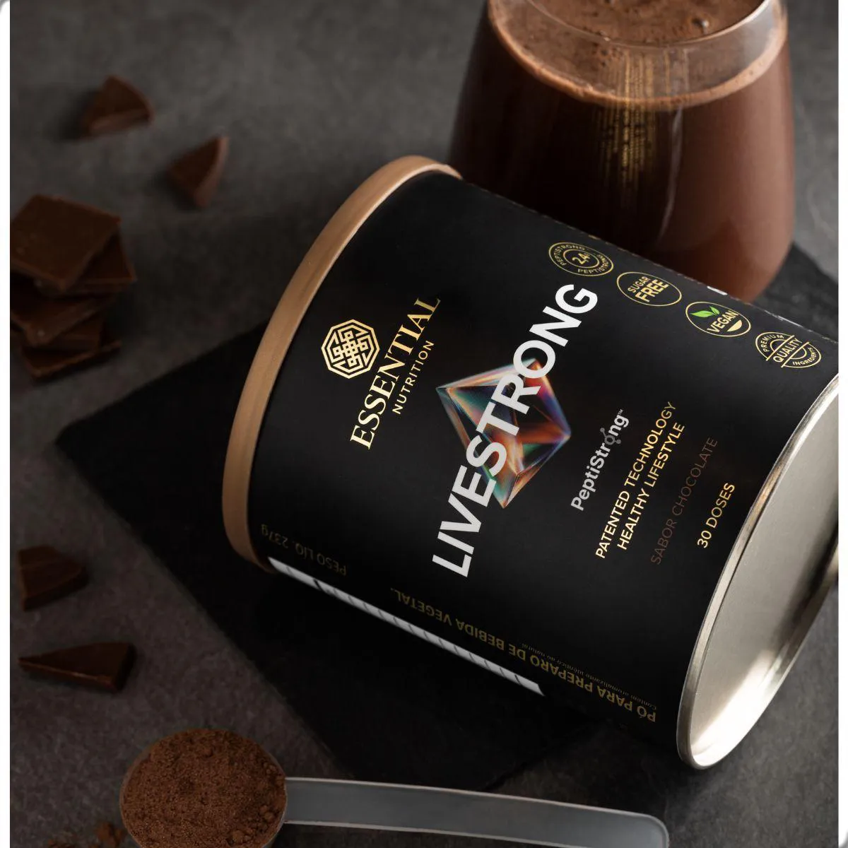 Livestrong Live Pepti Strong Fava Protein Vegan Essential Chocolate 237g