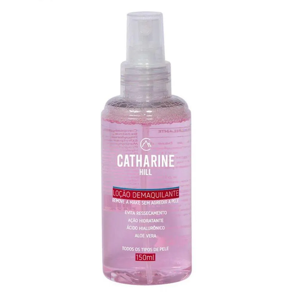 - Livre de óleo e a base de água, a Loção Demaquilante Catharine Hill remove a maquiagem do dia a dia sem agredir a pele, evitando o ressecamento, limpando profundamente a região dos olhos, rosto e corpo. Contém ácido hialurônico que ajuda a manter a sustentação e hidratação da pele, diminuindo a flacidez, linhas e sinais de expressão. Indicado para todos os tipos de pele.