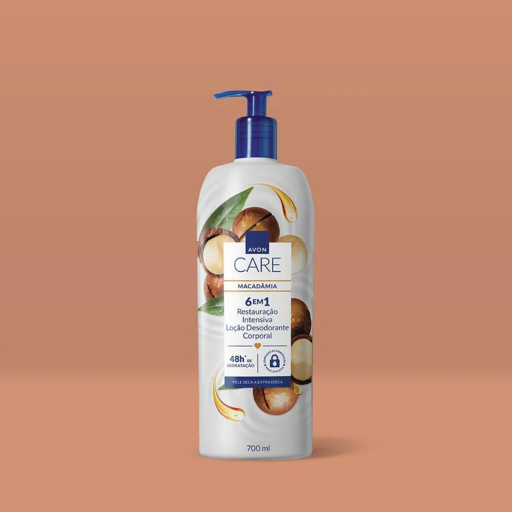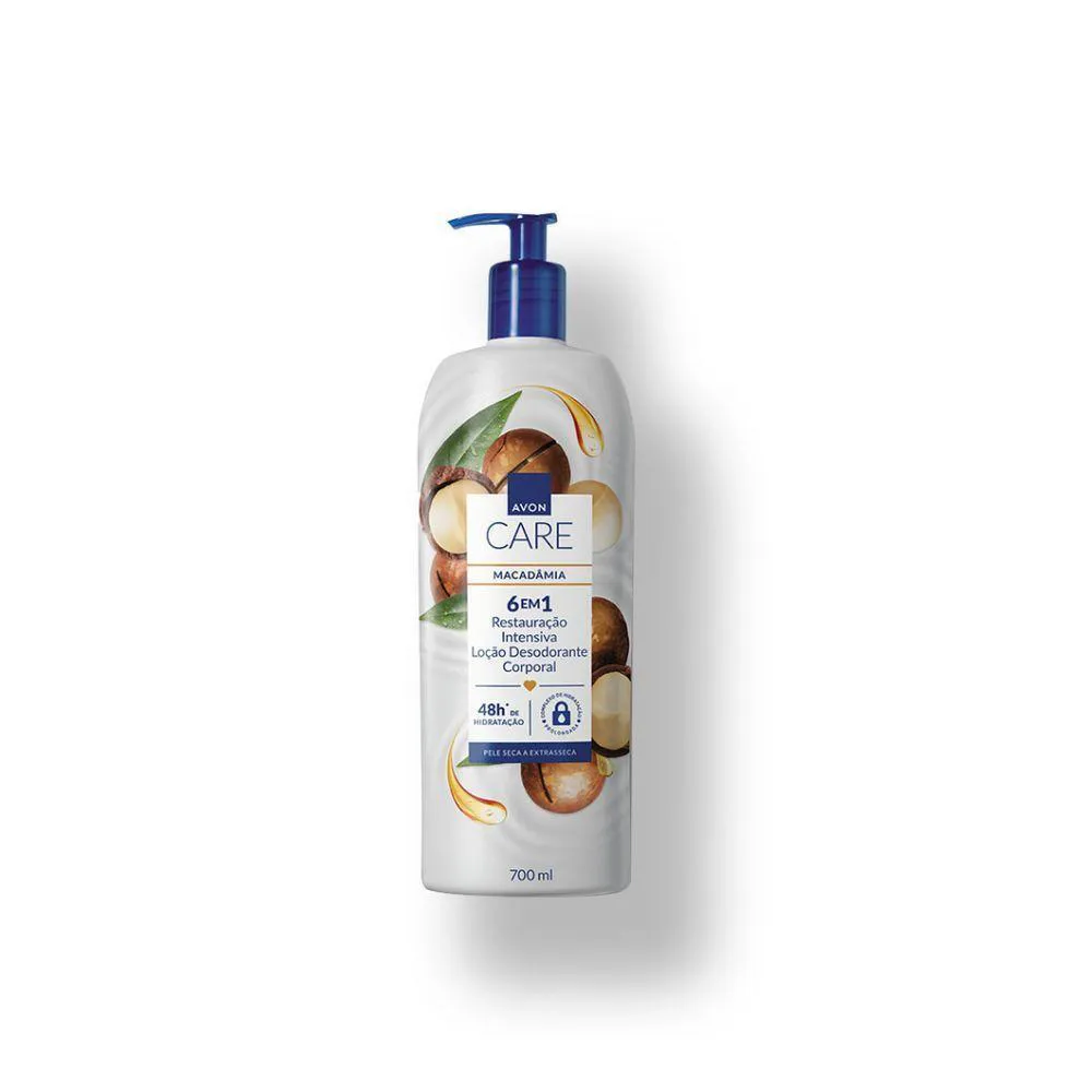A Loção Desodorante Corporal Avon Care Óleo de Macadâmia é um cuidado intensivo que combina hidratação profunda com nutrição reparadora, ideal para peles secas e ressecadas. Sua fórmula enriquecida com óleo de macadâmia, conhecido por suas propriedades emolientes e regeneradoras, restaura a maciez natural da pele, deixando-a suave, luminosa e protegida contra a perda de hidratação.Hidratação prolongada de até 48 horas, mantendo a pele nutrida e saudável.- Óleo de macadâmia: ingrediente rico em ácidos graxos que repõe lipídios essenciais, recuperando o equilíbrio natural da pele.- Ação desodorante, proporcionando frescor e proteção no dia a dia.- Textura cremosa de rápida absorção, sem deixar resíduos pegajosos.- Indicado para todos os