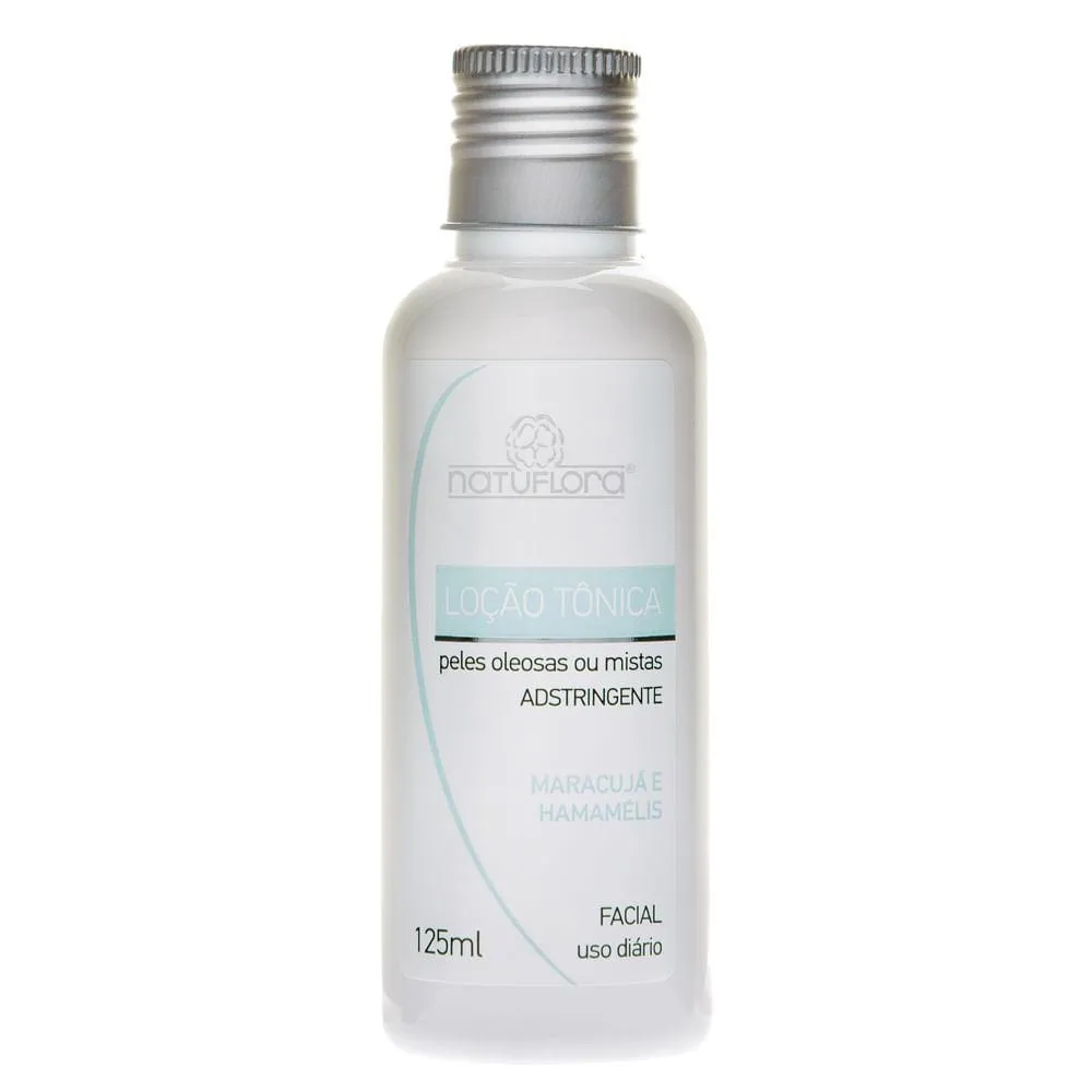 A Loção Tônica Natuflora é um produto cosmético desenvolvido com extratos naturais de Hamamélis e Maracujá, especialmente formulado para cuidados faciais. Possui ação adstringente que ajuda a restringir os poros e controlar a oleosidade da pele.