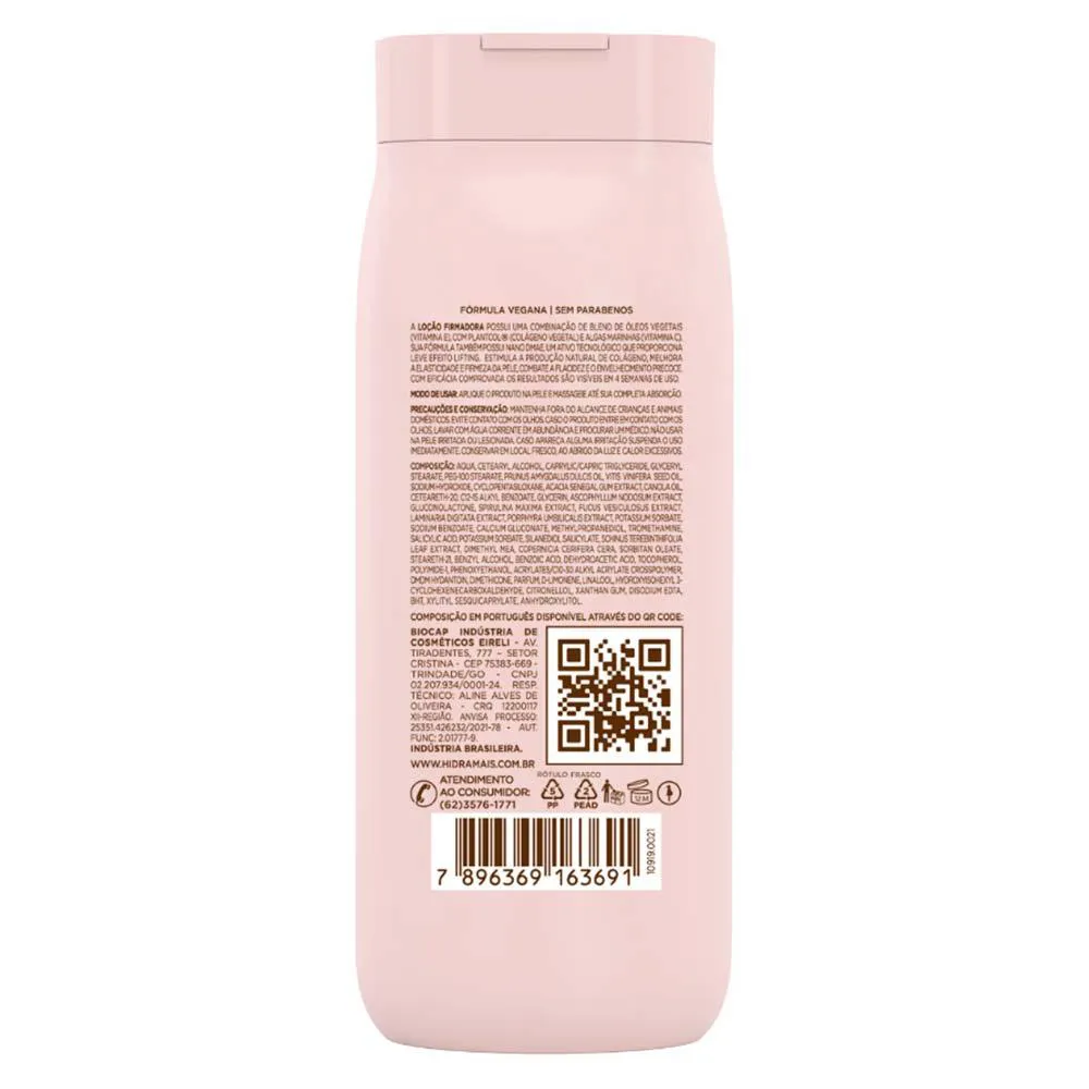 A Loção Firmadora possui uma combinação de blend de Óleos Vegetais (vitamina e), com Plantcol (colágeno Vegetal) e Algas Marinhas (vitamina c).