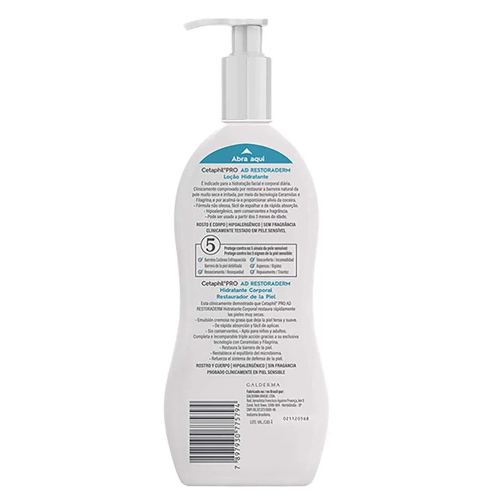 Loção calmante, que protege a pele e ajuda a aliviar a coceira, enquanto a combinação de ceramida e filagrina ajuda a restaurar a barreira natural de umidade da pele e melhora a capacidade de reter a hidratação ao longo do tempo. Cetaphil Pro Ad Hidratante hidrata, acalma e alivia a prurido da pele atópica restaurando a barreira cutânea. Loção hidratante facial e corporal para pele muito seca, sensível ou atópica. Além de hidratar, Cetaphil Loção Hidratante