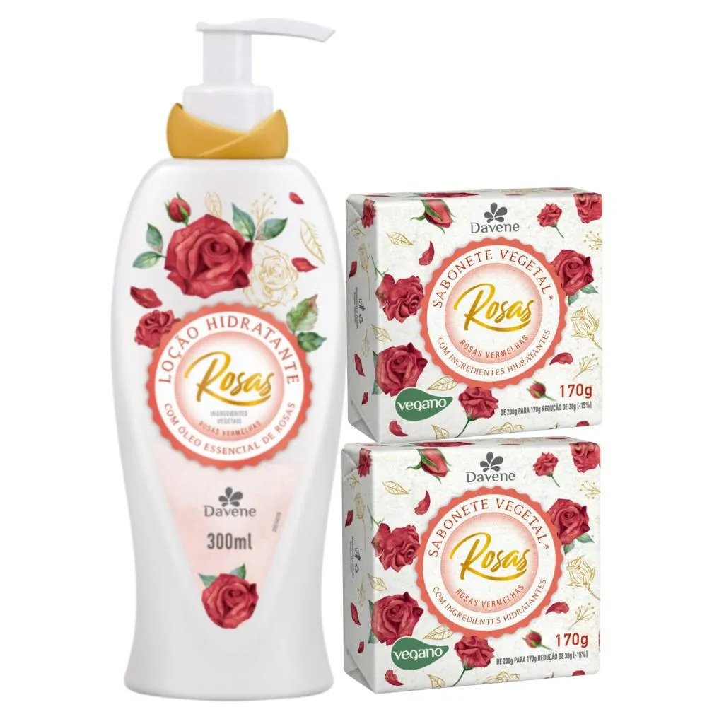 Loção Hidratante Corporal+ 2 Sabonete Rosas Vermelhas Davene